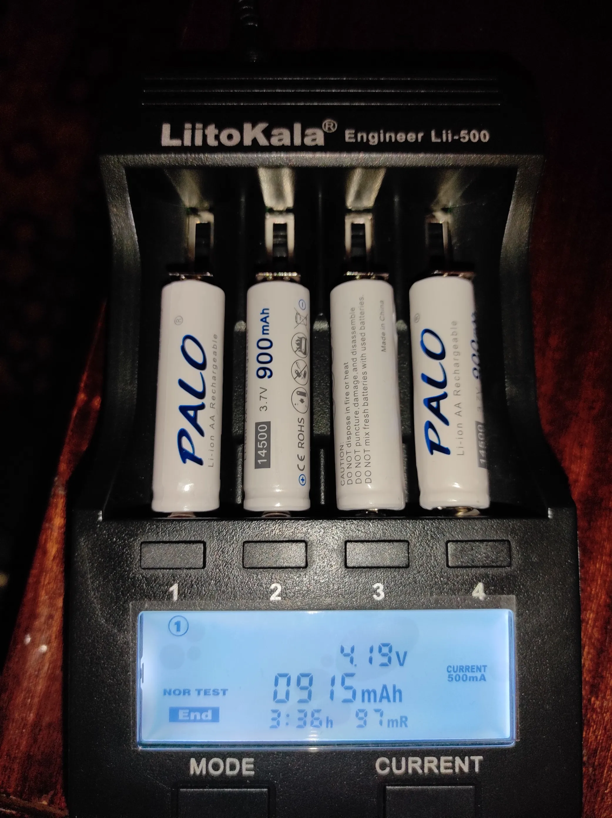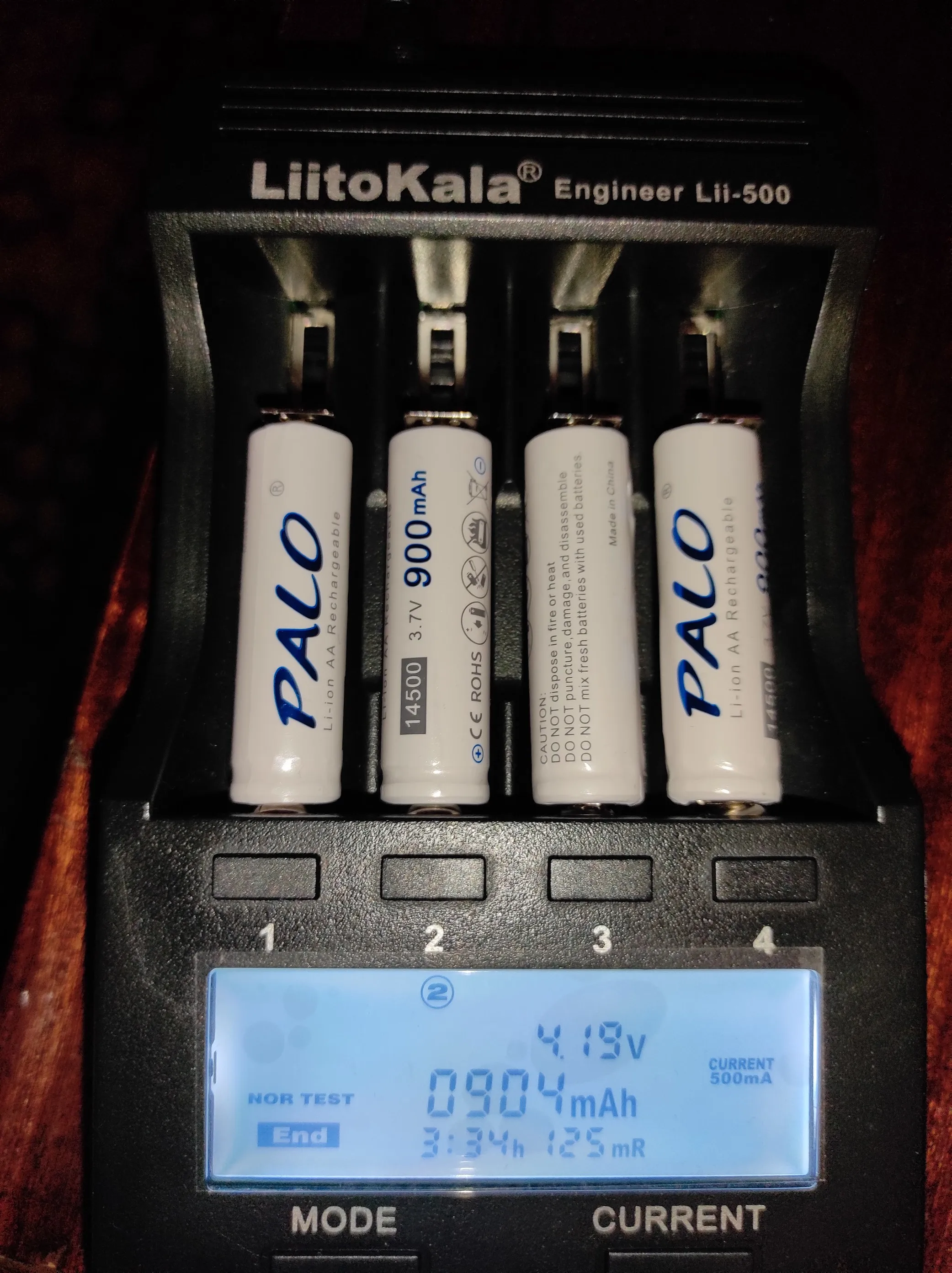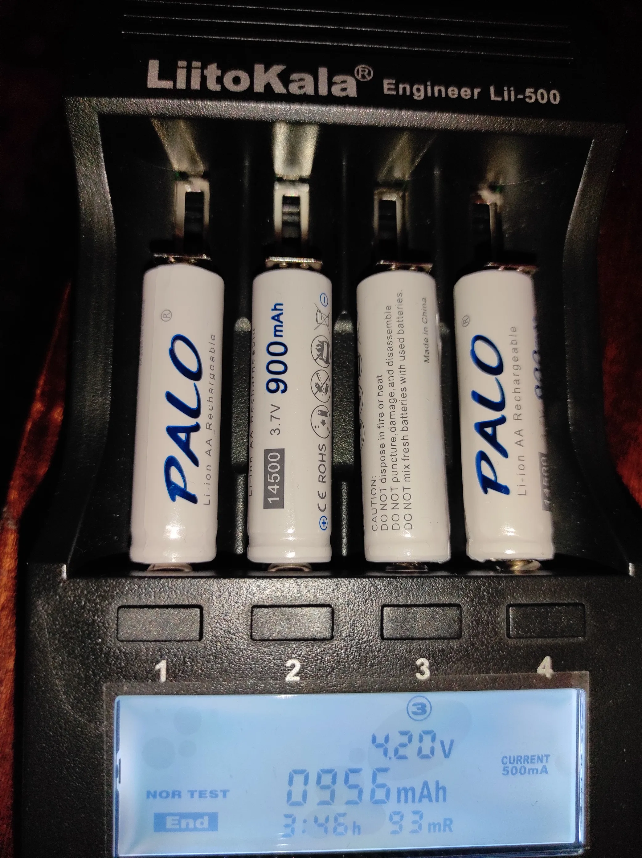 Отзыв на аккумуляторы PALO 14500 900mAh. === Быстрая доставка (на Украину меньше месяца через Novaposhta), хорошая упаковка. Однако товар отслеживался только на Украине. Все четыре аккумулятора соответсвуют заявленной емкости. Это низкотоковые аккумуляторы, вес 18 грам. За эту цену это оптимальное качество. Что плохого? На странице магазина отсусуствуют основные параметры аккумуляторов: минимальное допустимое напряжение, рабочий ток, максимальный допустимый ток, внутреннее сопротивление. Для фирменных аккумуляторов эти параметры должны быть указаны на странице магазина. Что бы продавец прочитал и исправил это заведомо выставляю заниженую оценку. А так спасибо за нормальные аккумуляторы и быструю доставку.