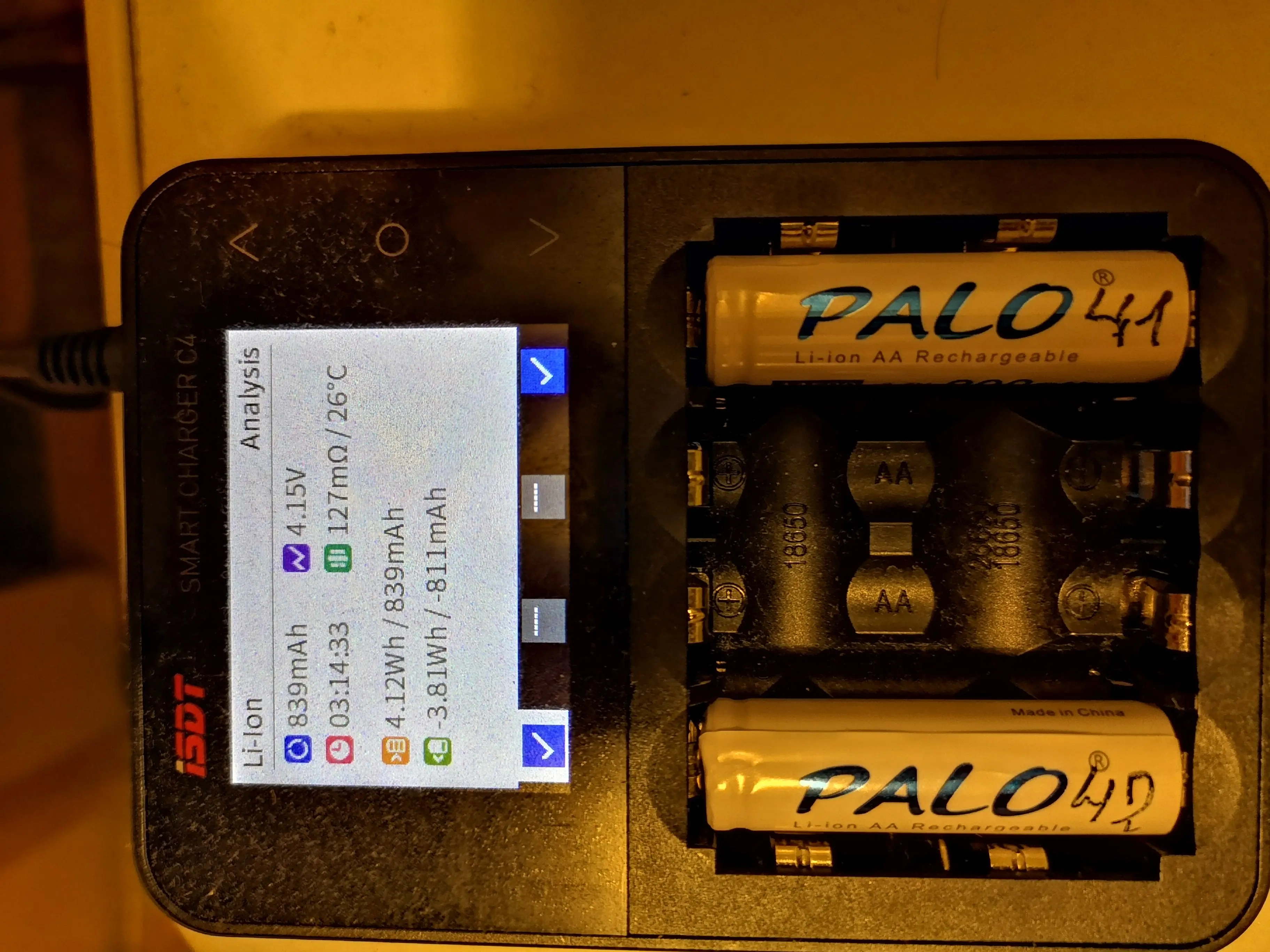 Аккумуляторы были заряжены почти на максимум (немного больше 4 V), а учитывая, что они ещё около полутора месяцев путешествовали по миру, это вдвойне неприятно.