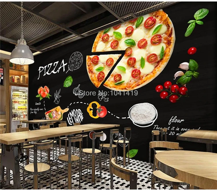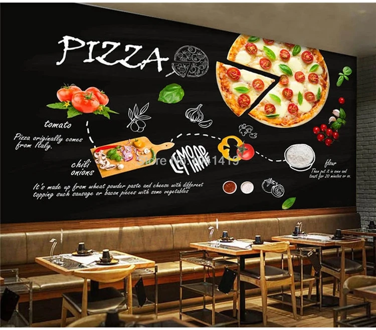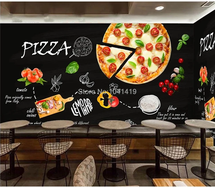 Пользовательские обои черный ручная роспись пицца фаст-фуд ресторан фон обои для стен 3 D Фреска Papel де Parede Декор