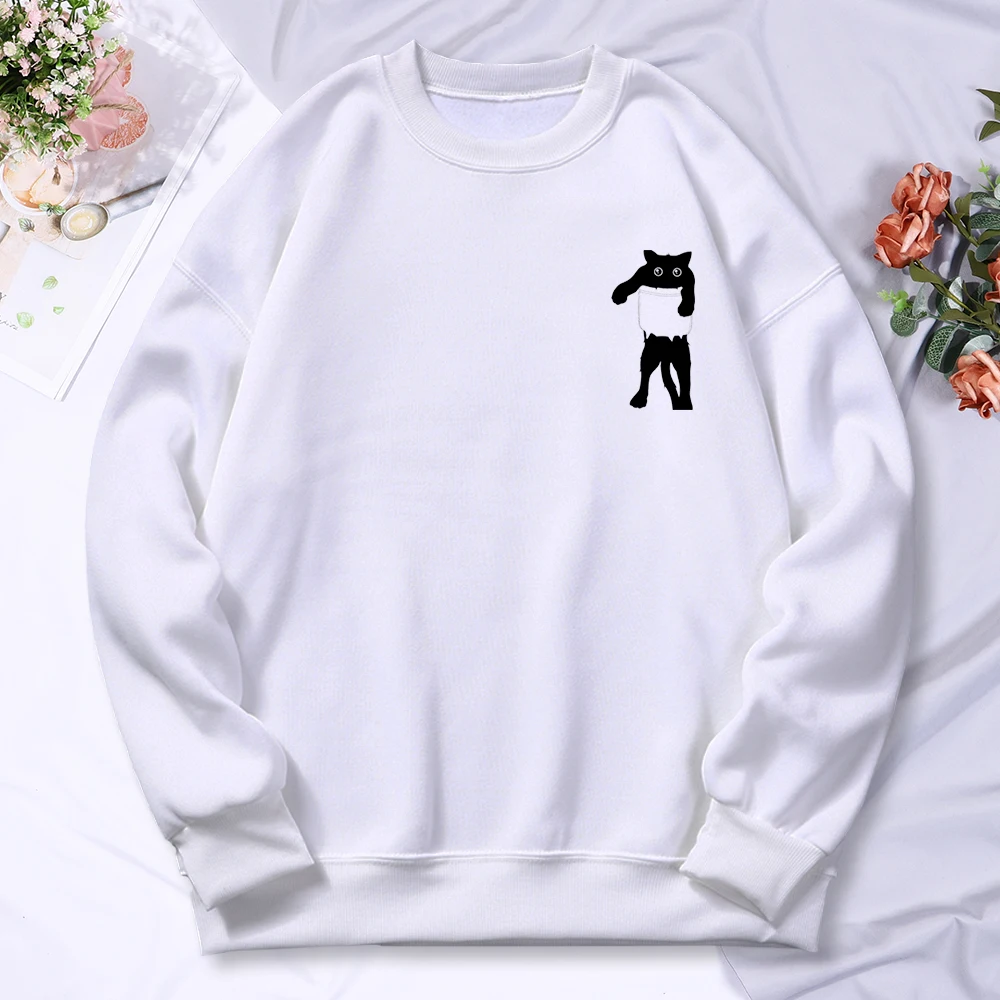 Свитшот мужской с рисунком кошки в кармане, пуловер, спортивный костюм в стиле хип-хоп, Повседневная забавная модная верхняя одежда для мужчин, весна 2021