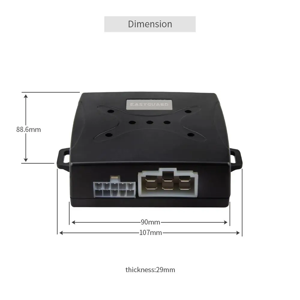 Совместимость: товар может работать с 95% бензиновыми автомобилями DC12V на рынке.Не может работать с двойной блокировкой импульса или разблокировкой сигналов автомобилей.Не может работать с кнопкой пуска и умным ключом, уже работающим на автомобилях.