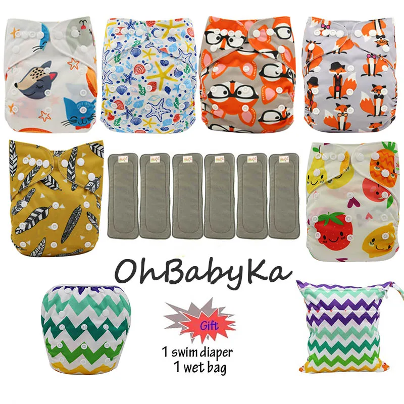 Памперсы Ohbabyka, 6 шт., детские подгузники с карманами, многоразовые подгузники, 6 шт., детские подгузники, Прямая поставка