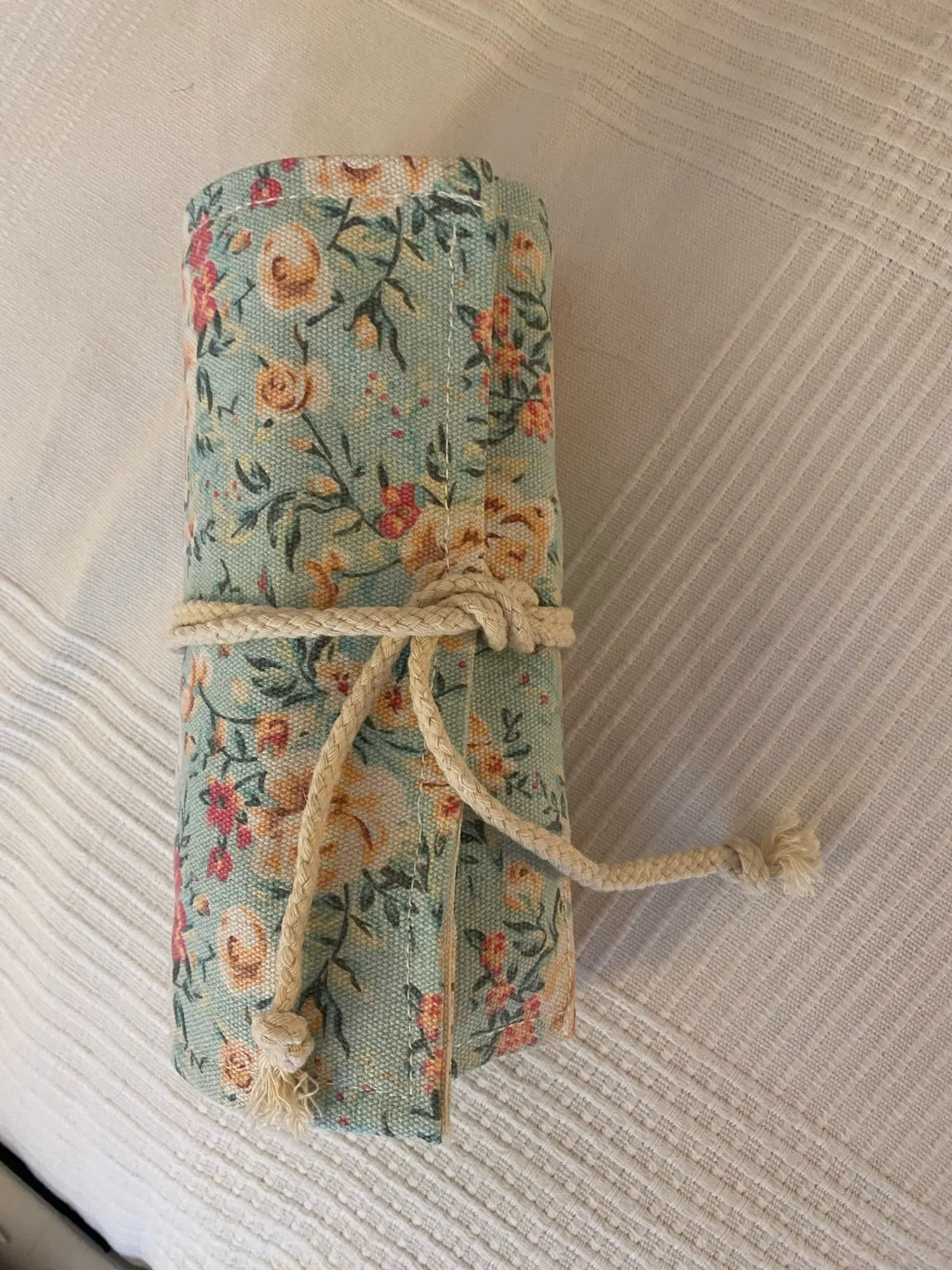Доставка в указанные сроки. Отличный товар, симпатичный чехол-скрутка из плотной ткани. Брала ранее доя карандашей другого цвета. Взяла этот уже для лайнеров и ручек)
