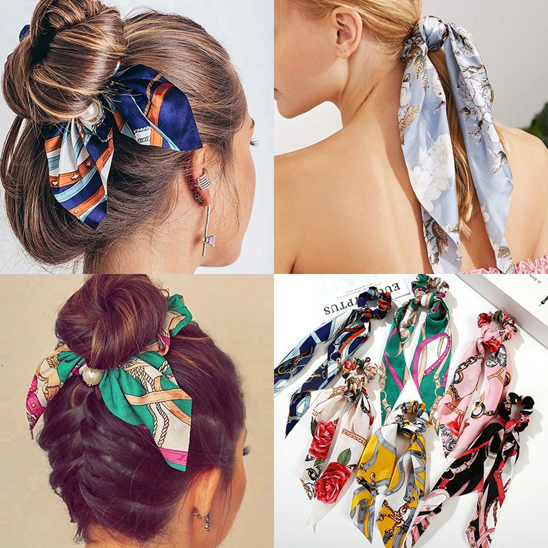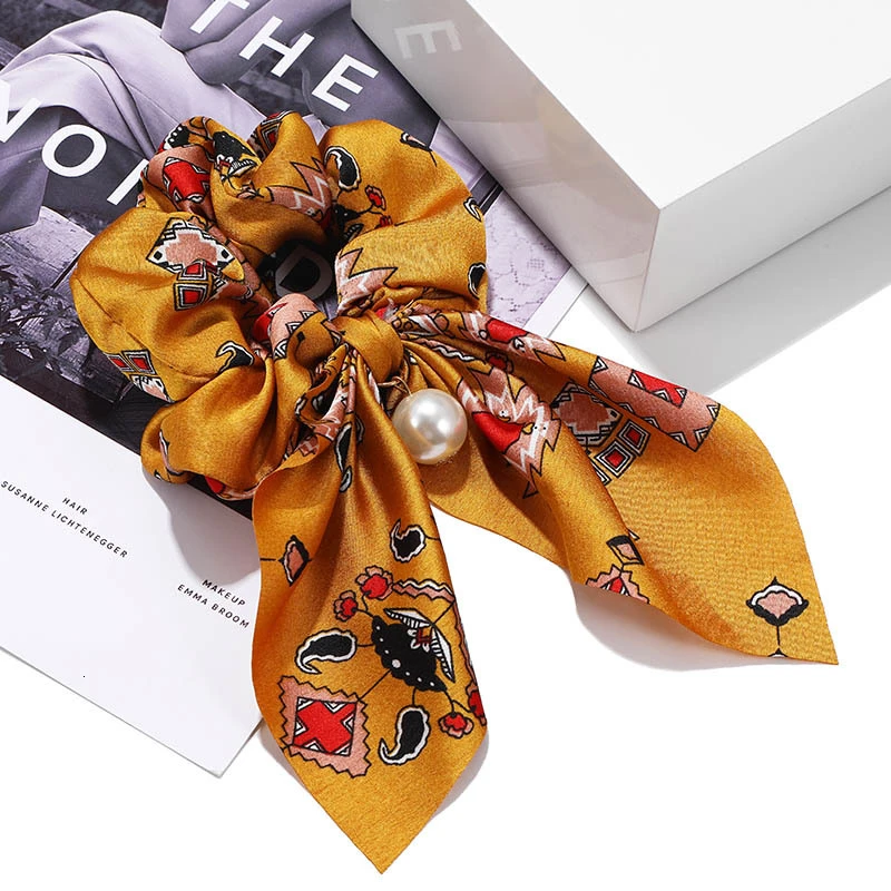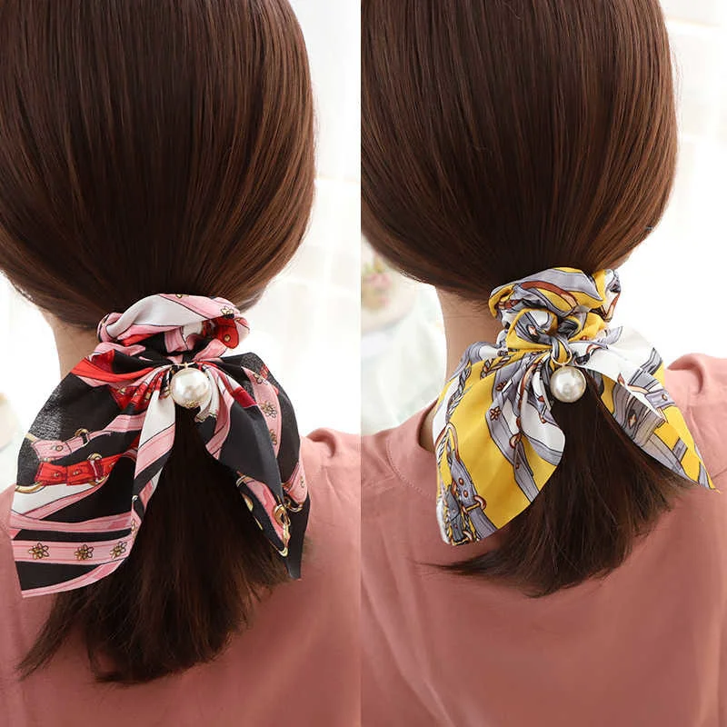 Резинки для волос с большим шифоновым бантом женские, модные эластичные резинки для хвоста с жемчужинами, аксессуар на голову