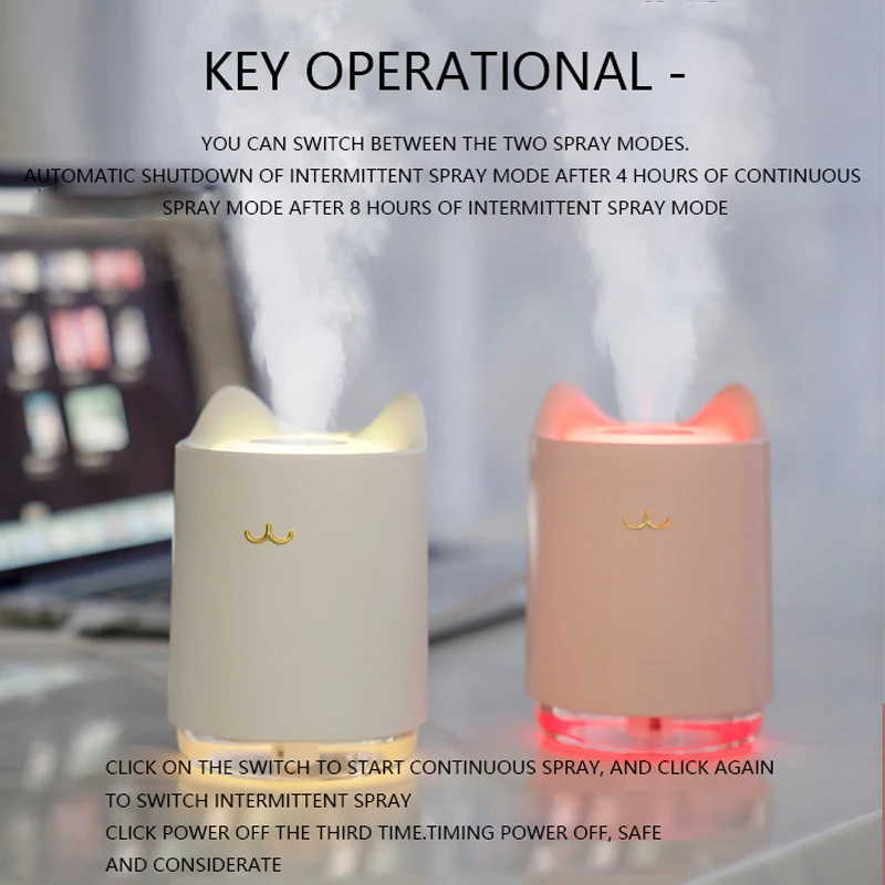 Ультразвуковой увлажнитель воздуха ELOOLE в форме кошки, USB, диффузор ароматического эфирного масла, очиститель воздуха, домашний автомобильный генератор тумана, светодиодный освежитель воздуха