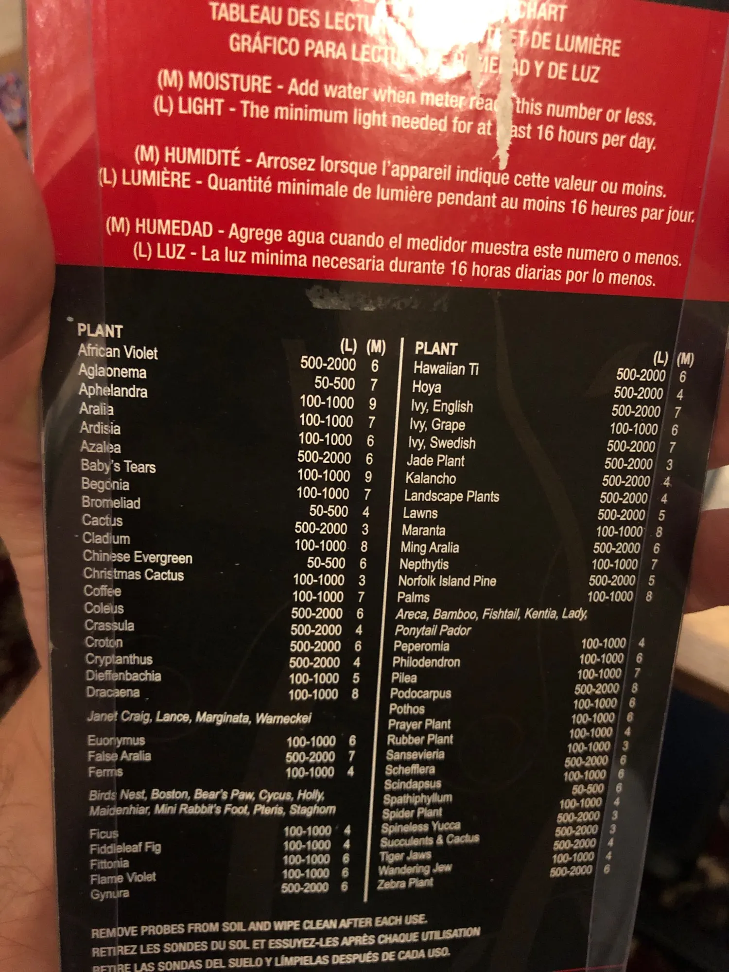 Отлично работает! Вы должны быть внимательны и Не погружать его в глубину, потому что вам нужно измерить на уровне корня. Кроме того, стыд, что есть только небольшой список образцов растений сзади, список должен быть больше. Но Google-ваш друг :)
