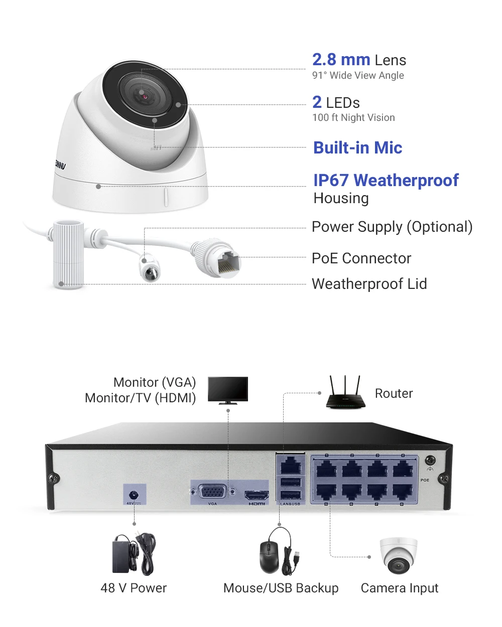 Система видеонаблюдения ANNKE, 8-канальная, FHD, POE, 5 Мп