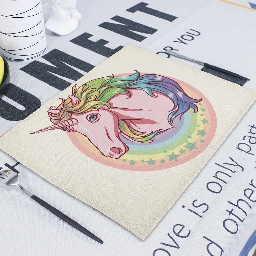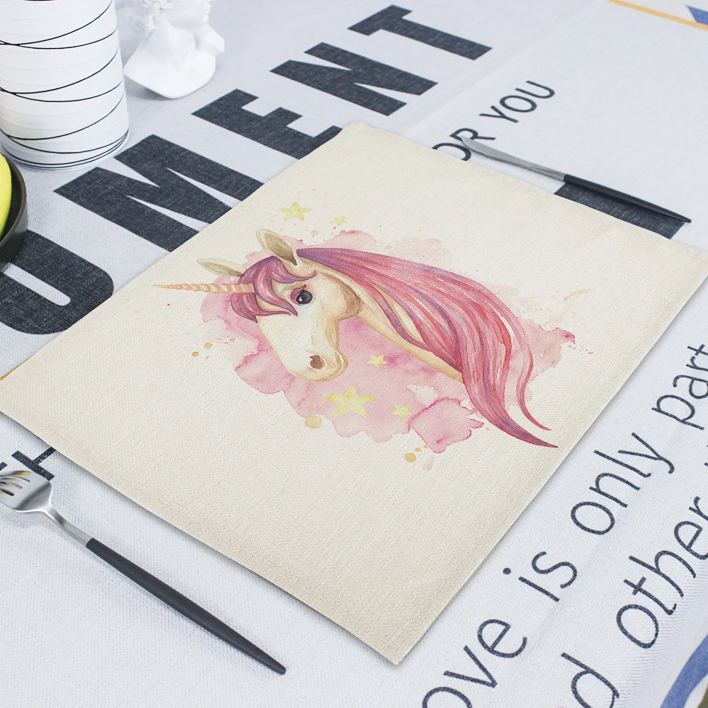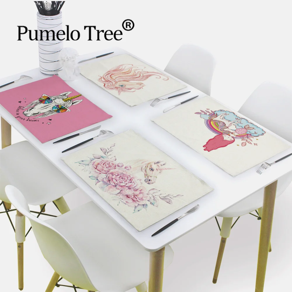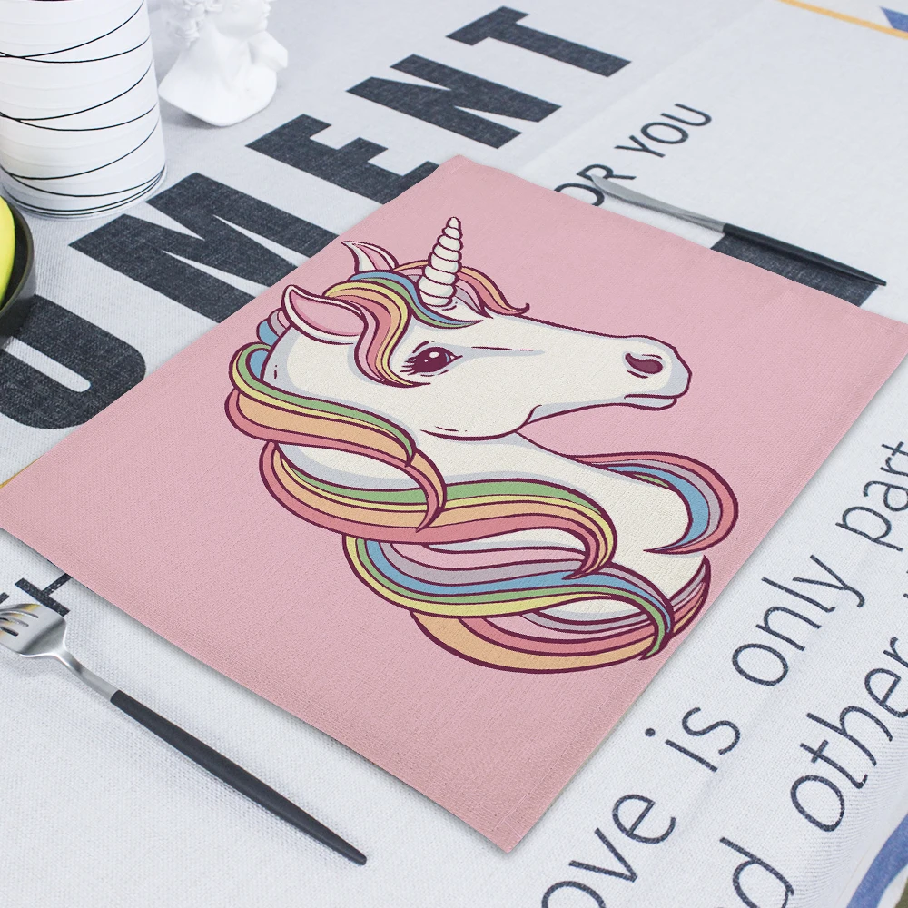 Мультяшный розовый коврик для стола, единорог, индивидуальные салфе...