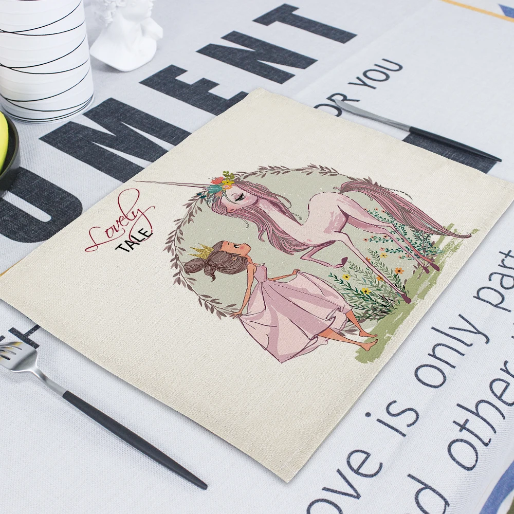 42*32 см Розовые Красивые Девушки Новые Мультяшные животные Единорог скатерть для стола домашний декор скатерть для стола свадебные салфетки скатерти