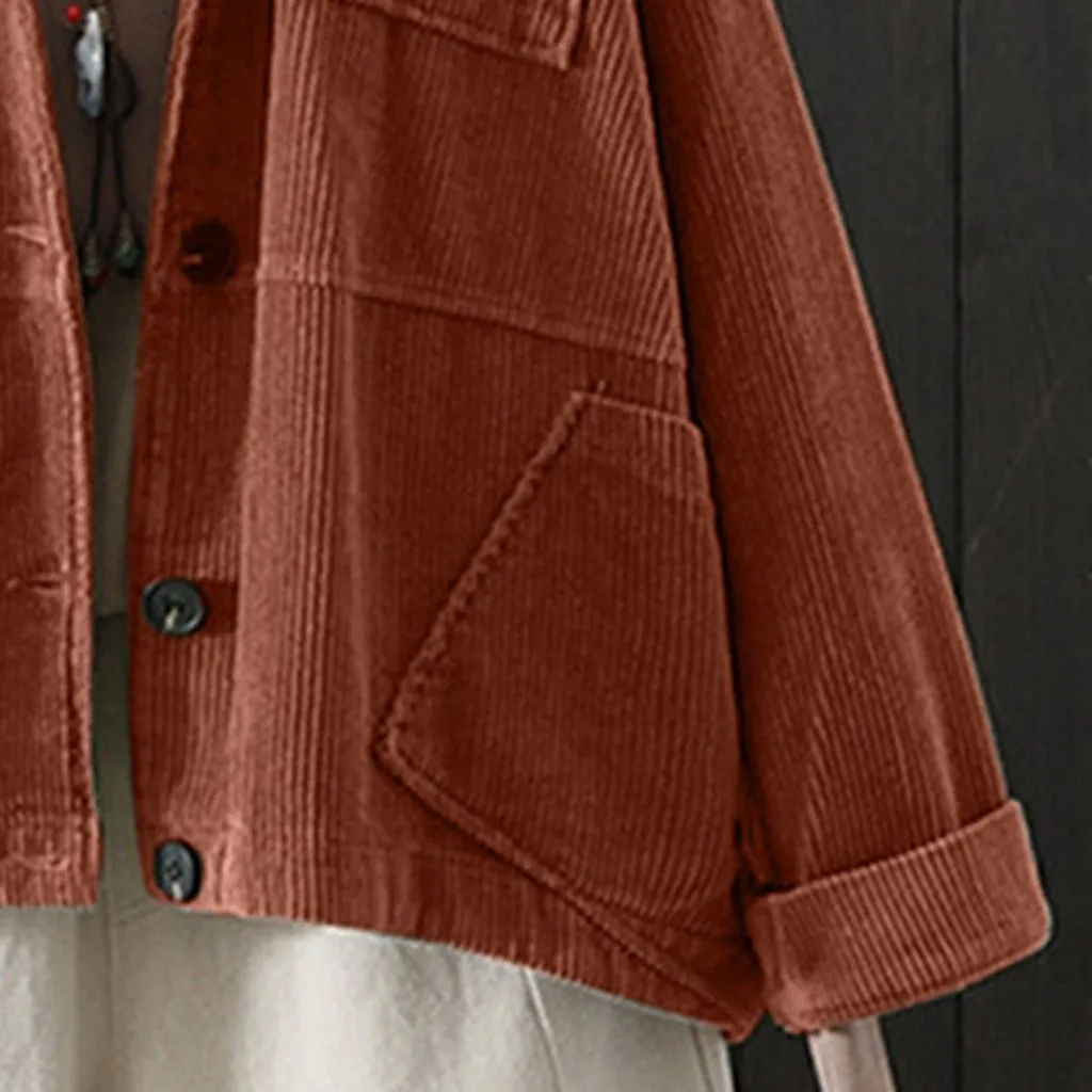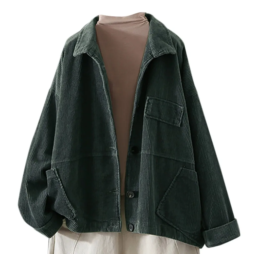 Куртка женская Вельветовая на пуговицах, Модный повседневный однотонный жакет с карманами, размера плюс, уличная одежда, z1016, Осень-зима