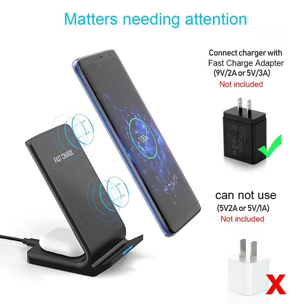 Примечание: Адаптер должен использовать быстрое зарядное устройство QC2.0/QC3.0 для обеспечения высокой мощности зарядки беспроводного зарядного устройства.