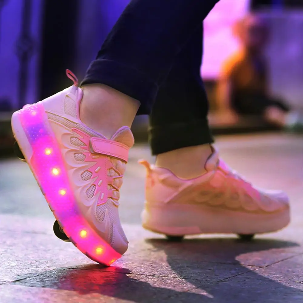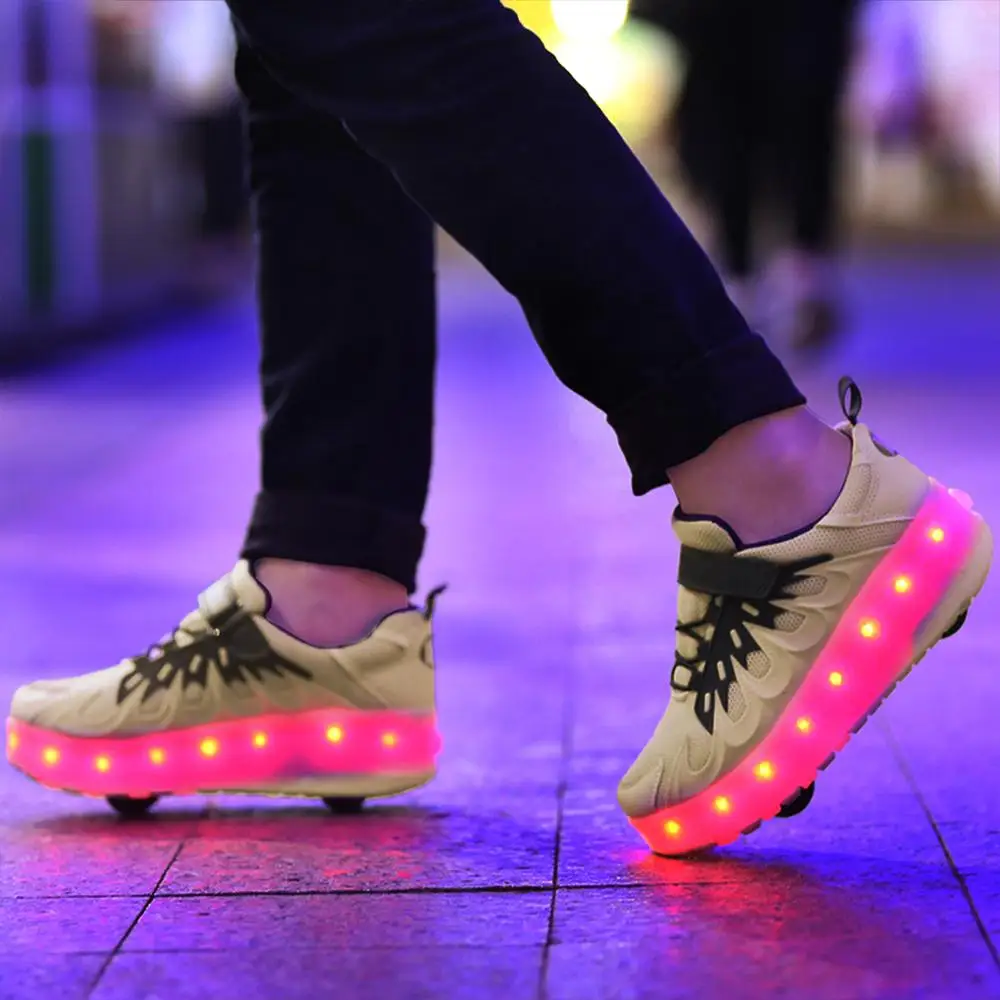 Детские кроссовки со светодиодсветильник кой, для роликовых коньков, с USB-зарядкой, двухколесные, для девочек и мальчиков, черные розовые серые