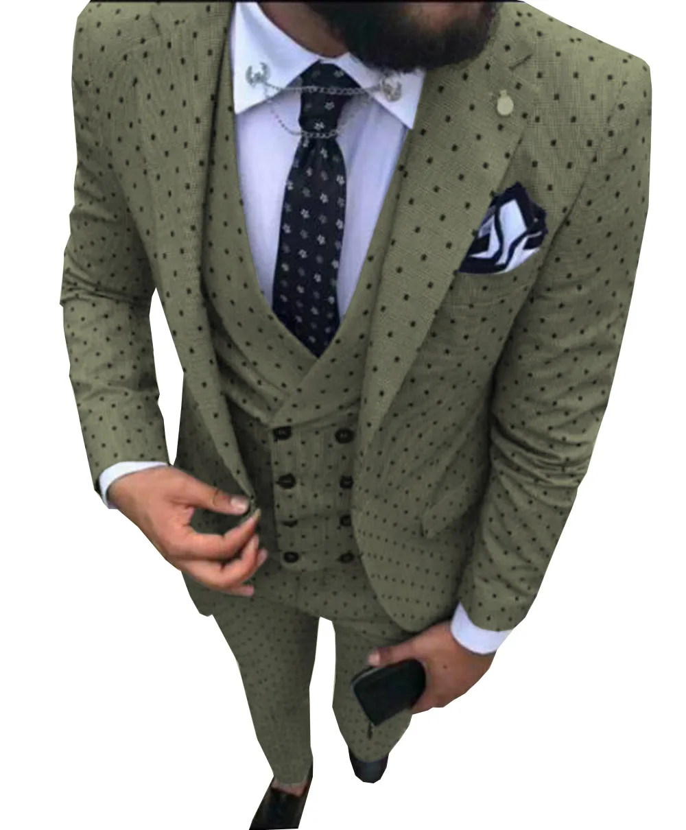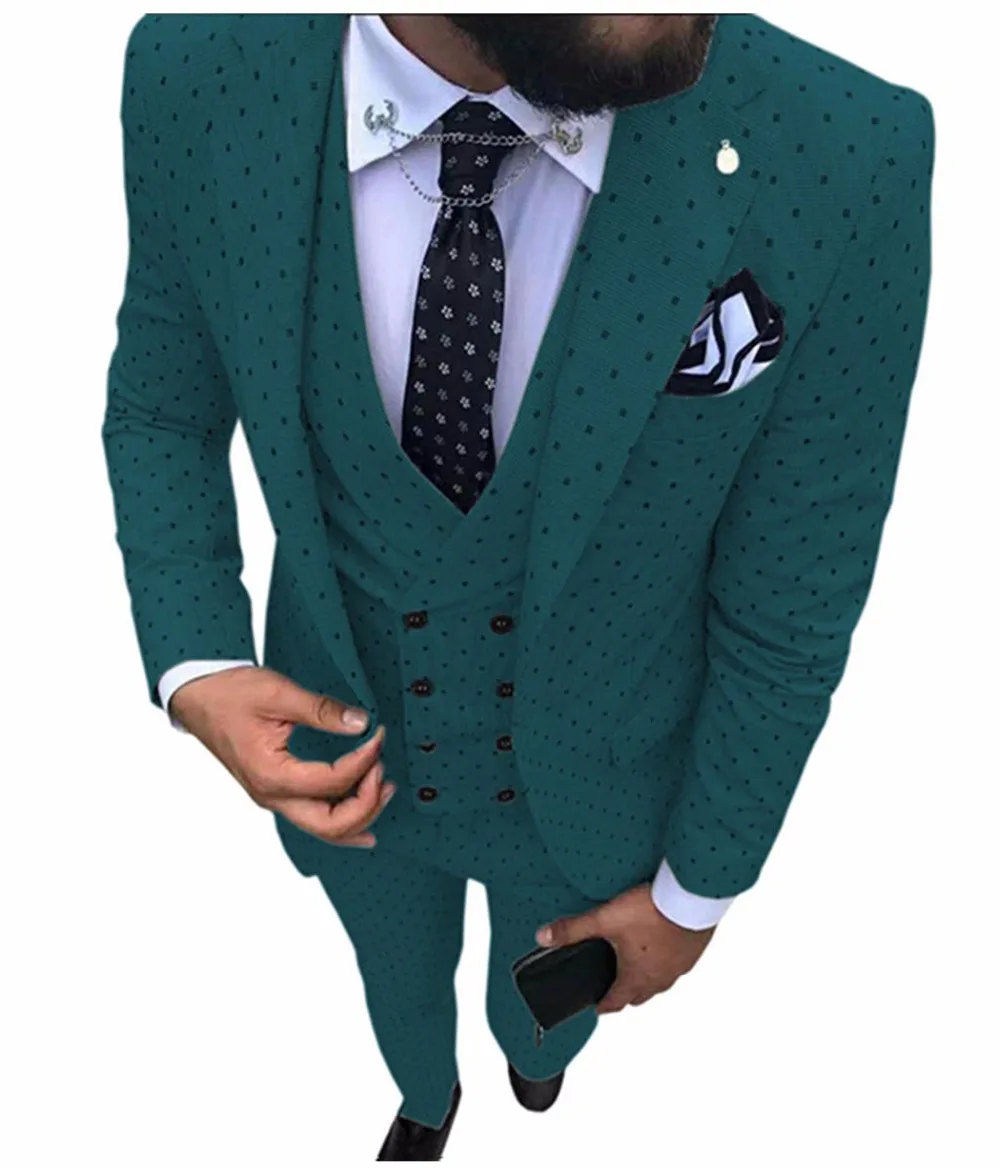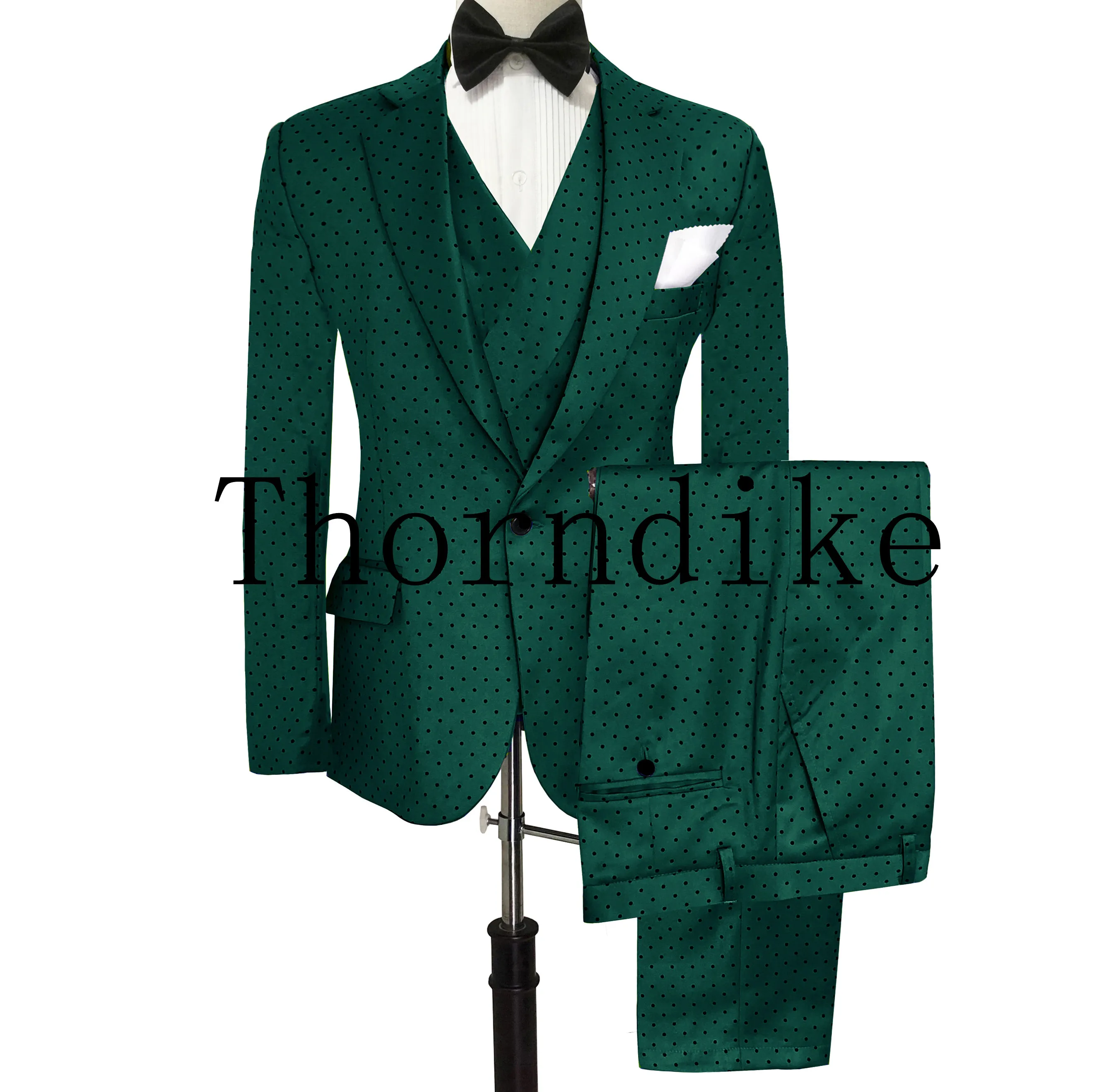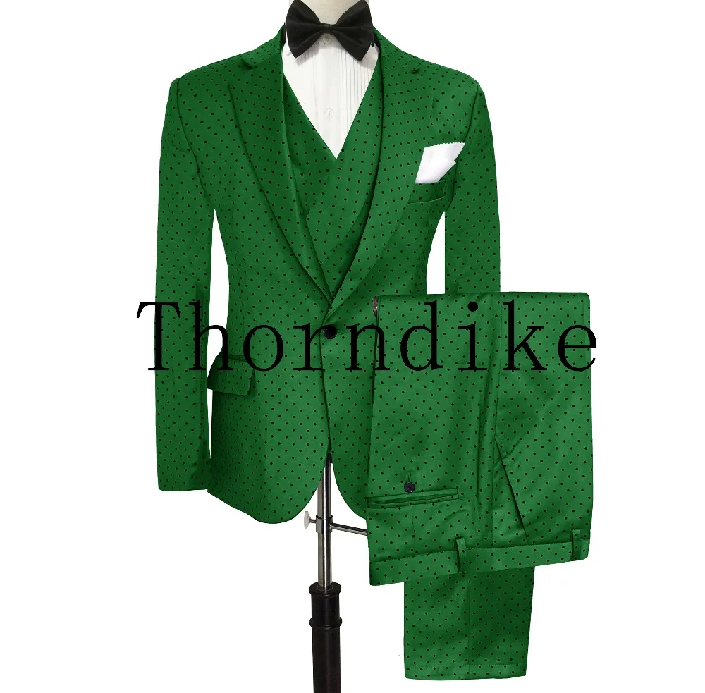 На заказ темно-зеленые костюмы в горошек для мужчин 3 предмета (пиджак + брюки + жилет) повседневный свадебный блейзер жениха смокинг на заказ для мужчин для свадьбы