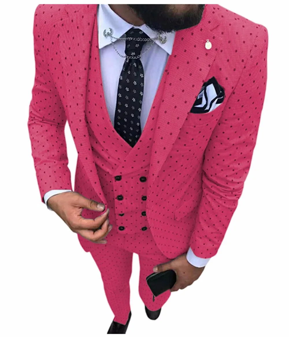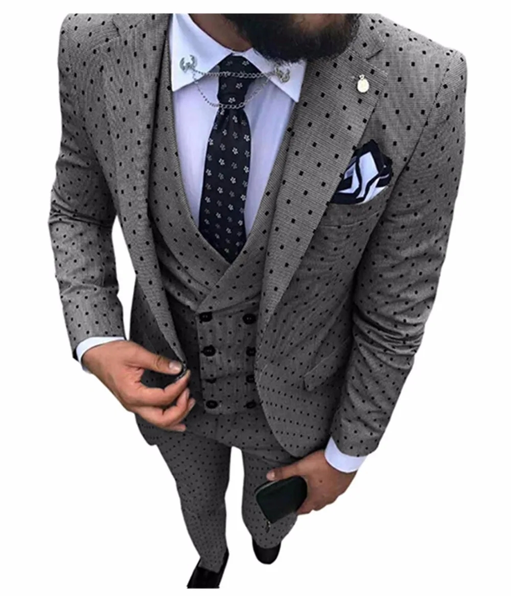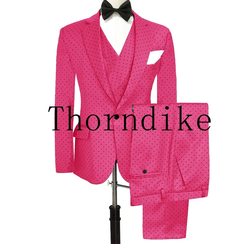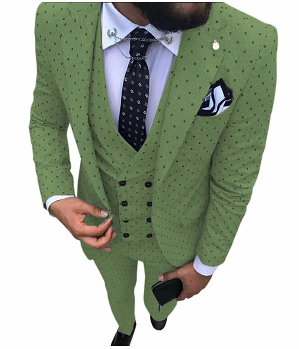 На заказ темно-зеленые костюмы в горошек для мужчин 3 предмета (пиджак + брюки + жилет) повседневный свадебный блейзер жениха смокинг на заказ для мужчин для свадьбы