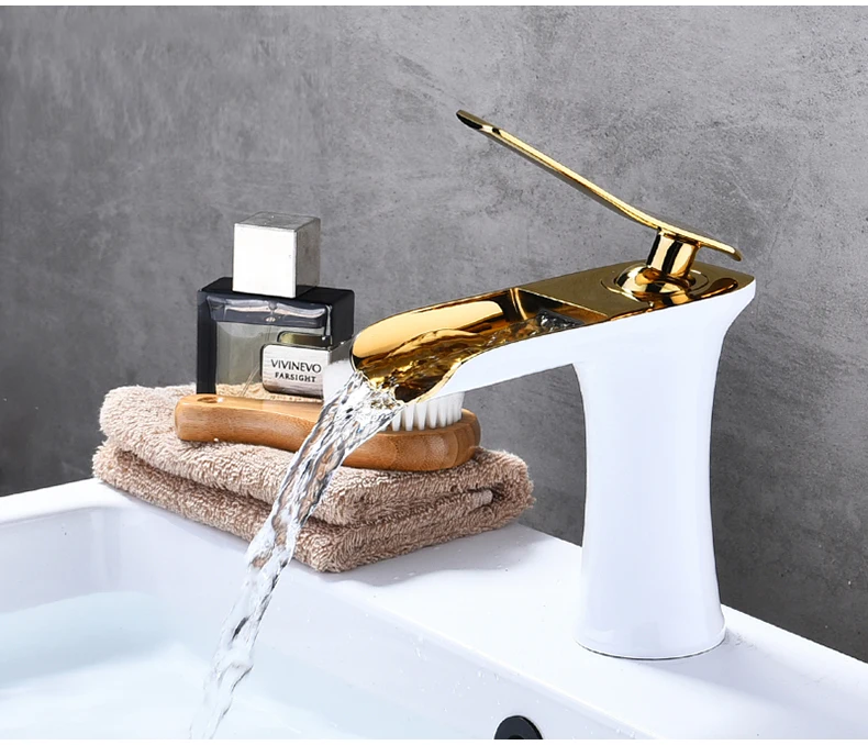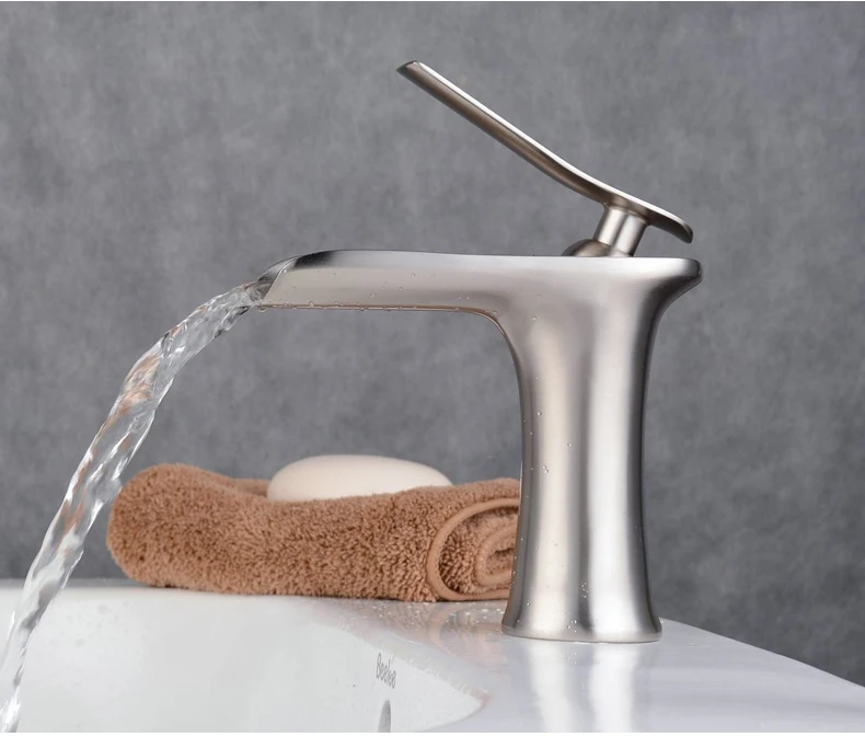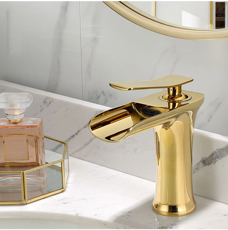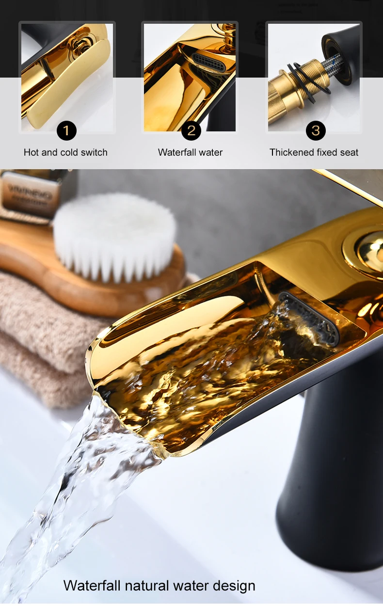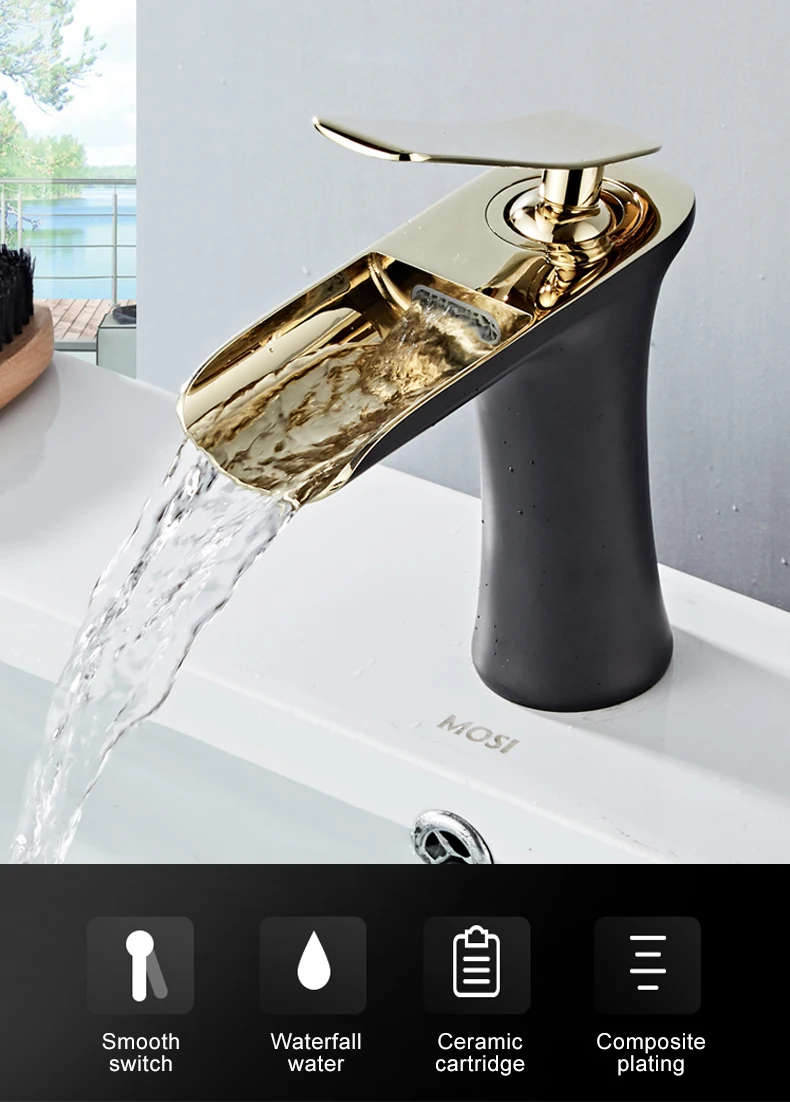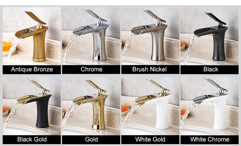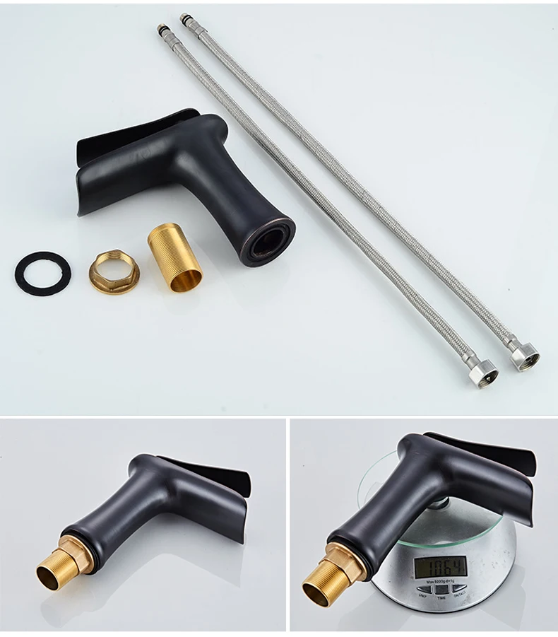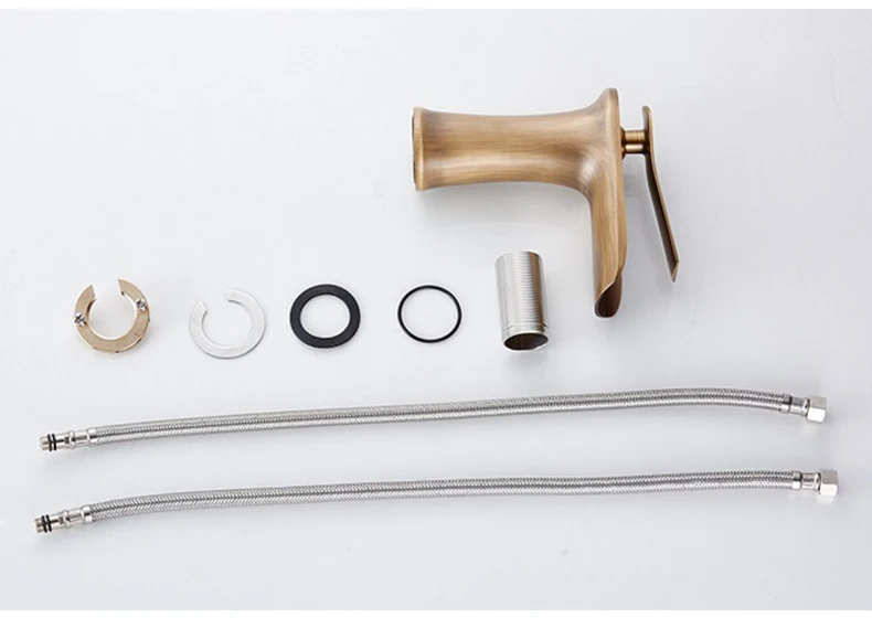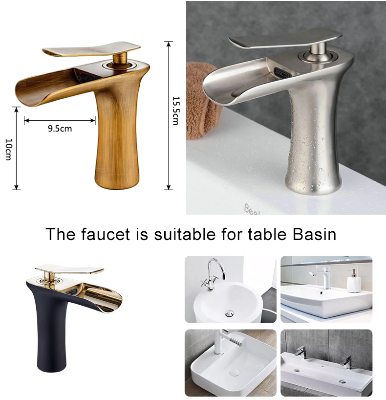 Смеситель водопад ELM100 для раковины в ванную комнату, кран горячей и холодной воды с креплением на раковину, хромированная античная бронза