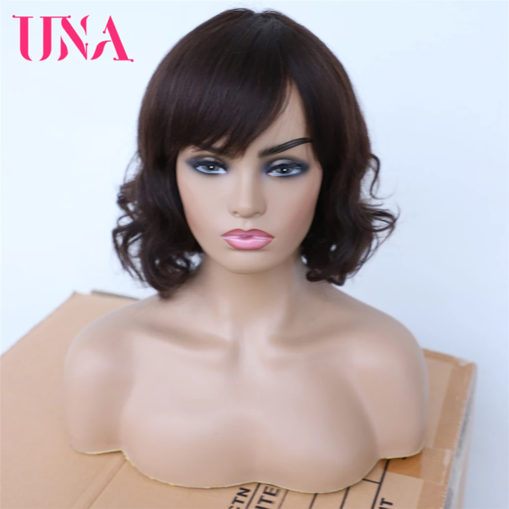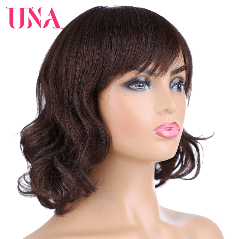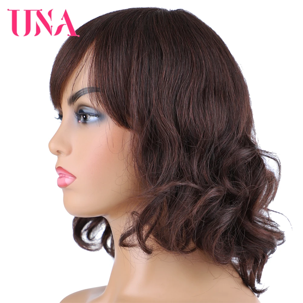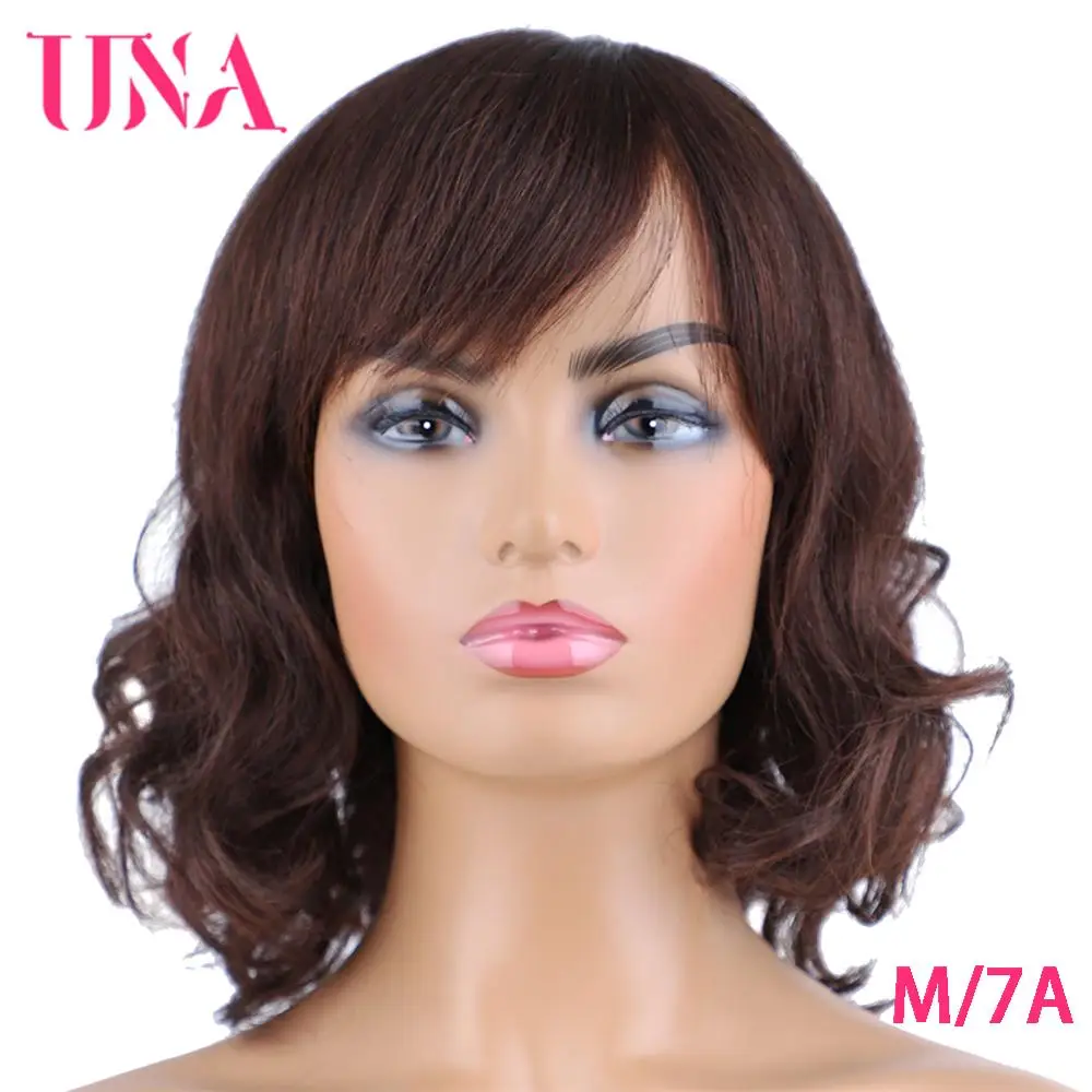 Парики UNA Malaysia из человеческих волос для женщин, волнистые машинные парики, парики не Реми из человеческих волос, 7A, среднее соотношение 10 дюймов, плотность 120%, 11 цветов
