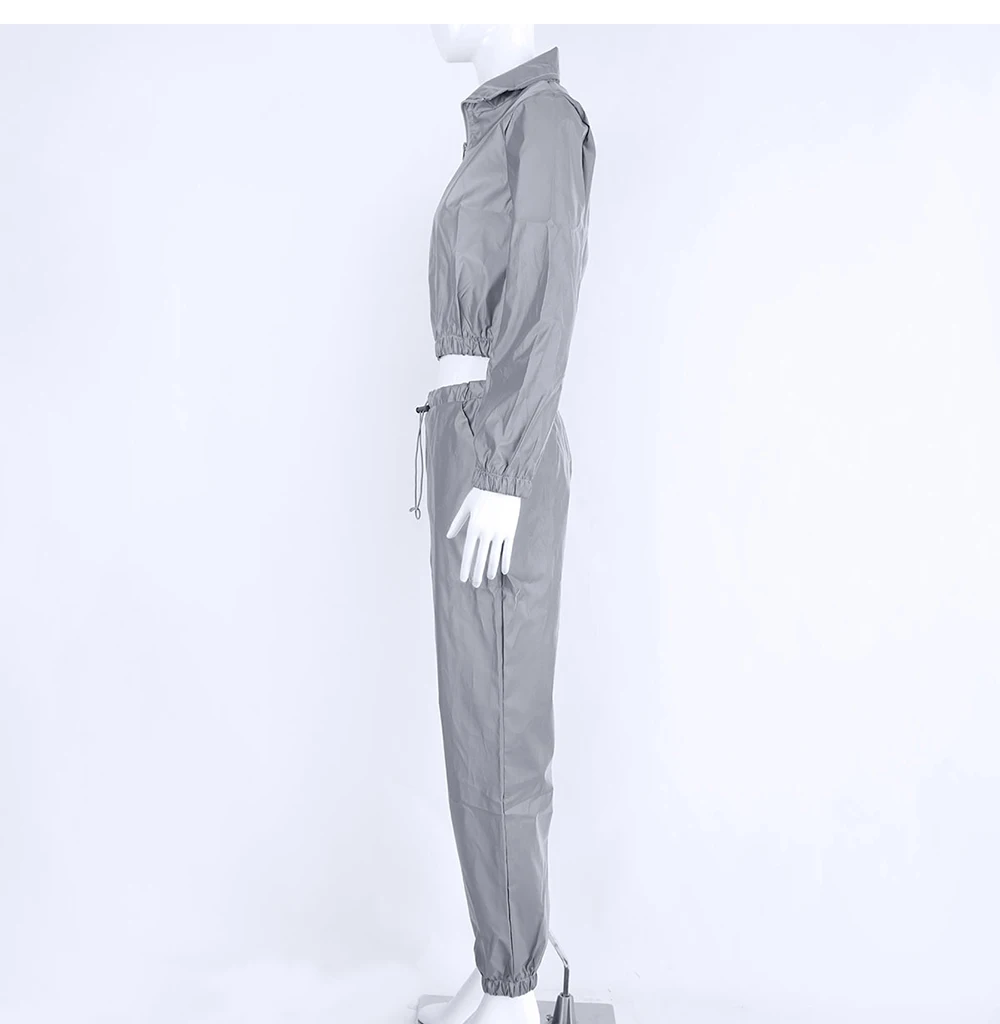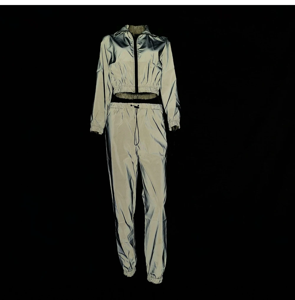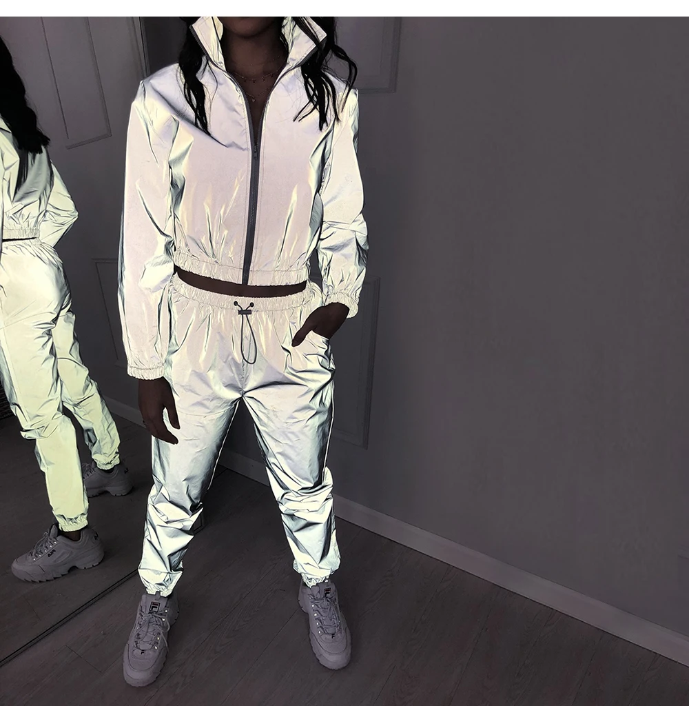 Осенняя Женская одежда, комплект из двух предметов, уличная одежда, Женская Светоотражающая одежда, одежда для вечеринки, ночного клуба, женские наряды