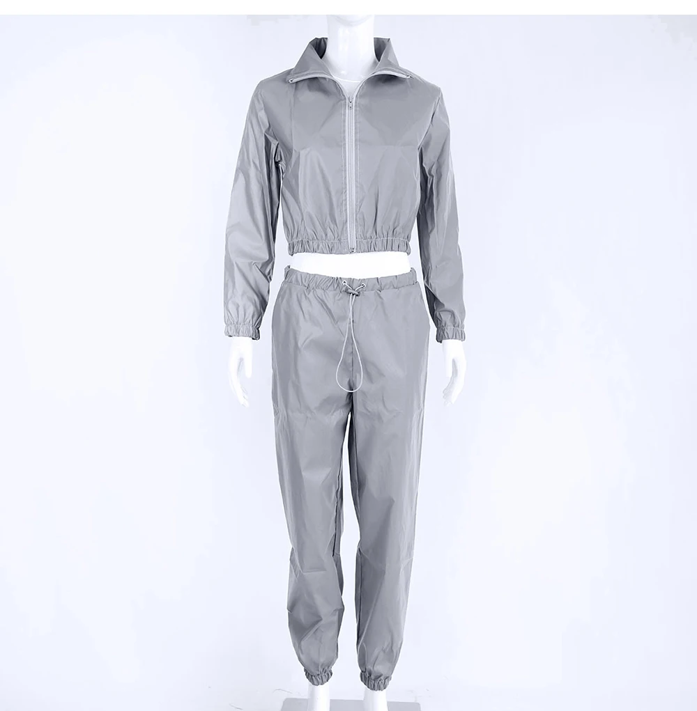 Осень Conjunto Feminino одежда для отдыха комплект из двух предметов уличная Женская Светоотражающая одежда вечерние костюмы для ночного клуба