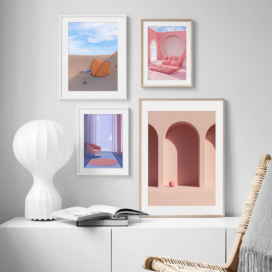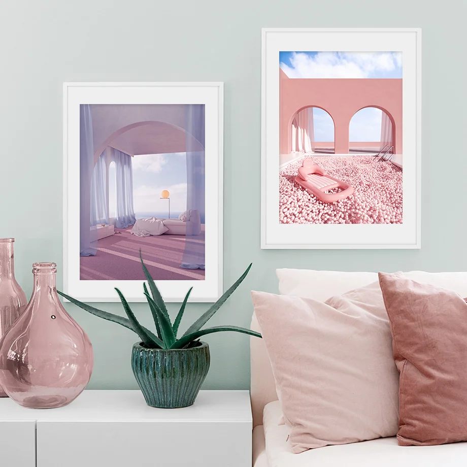 Настенные постеры в скандинавском стиле с изображением розовых лепе...