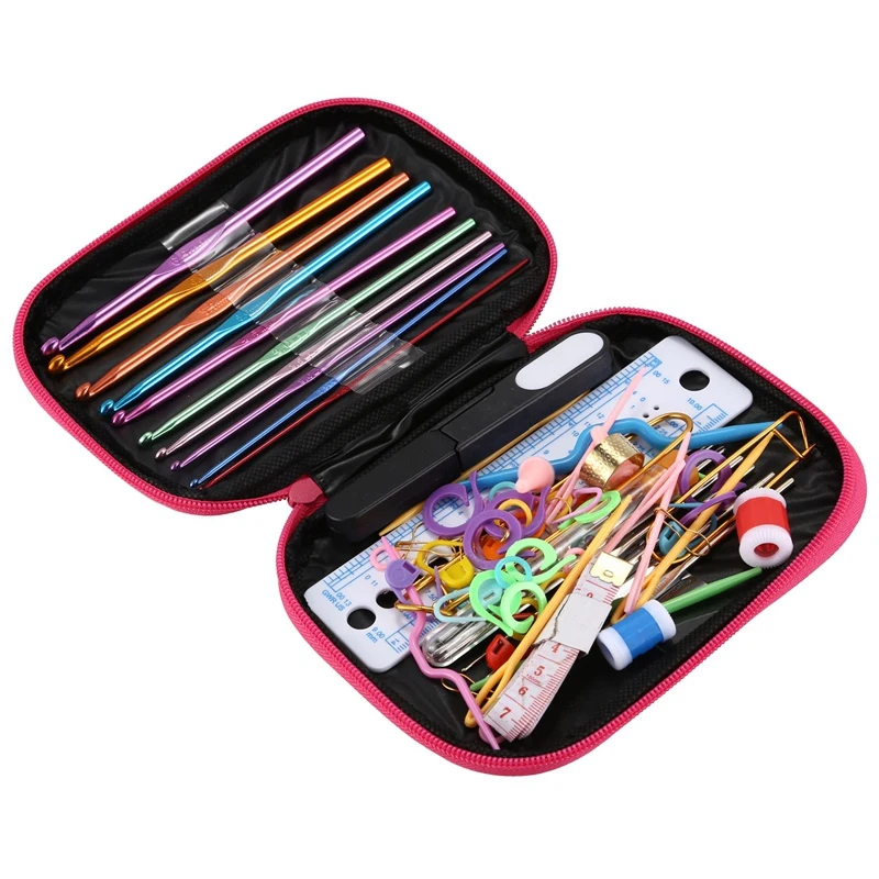 Ценный набор: этот набор вязания крючком содержит 100 штук различных вязальных инструментов-Алюминиевые крючки для вязания крючком и другие аксессуары для вязания. Один вязаный набор отвечает различным потребностям