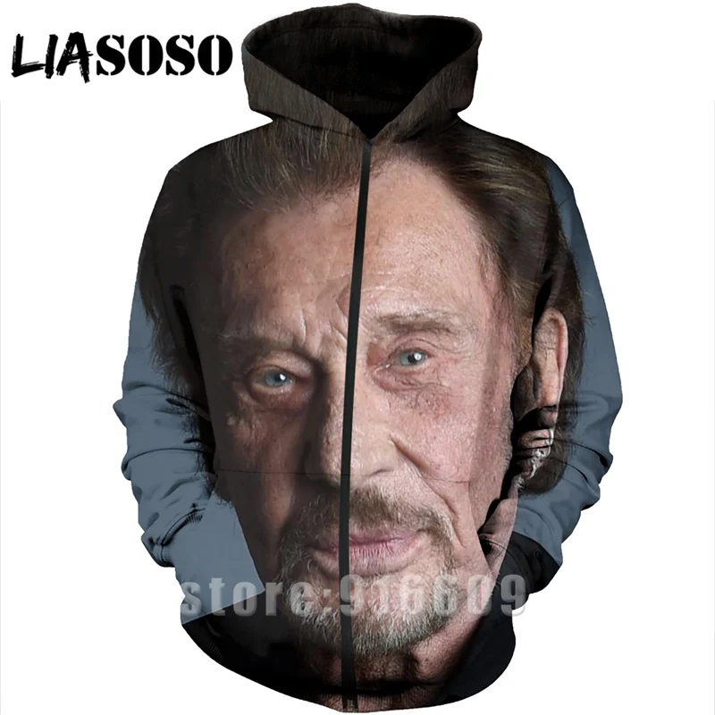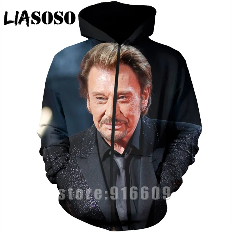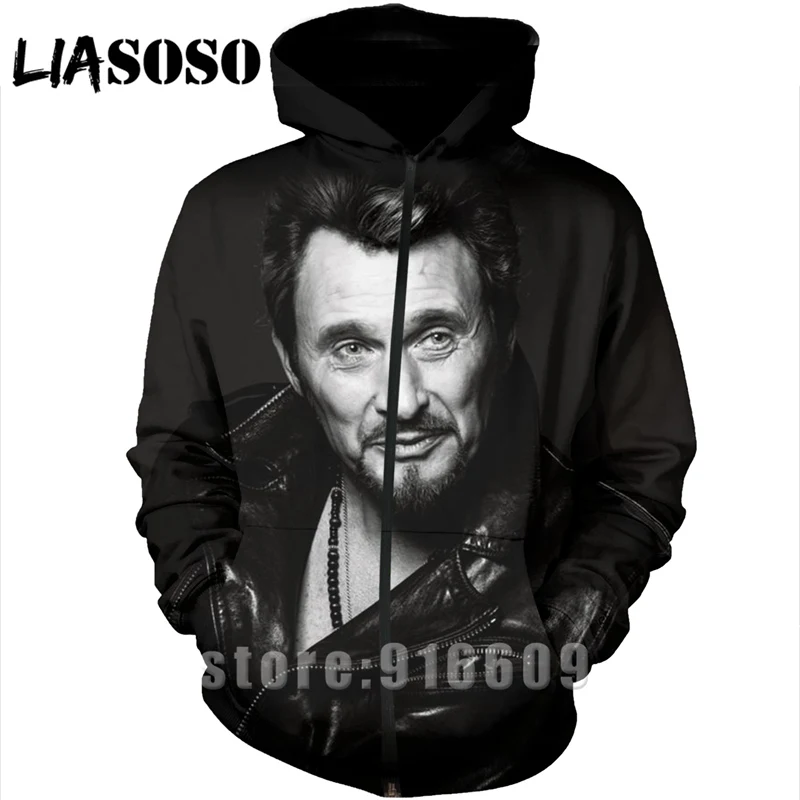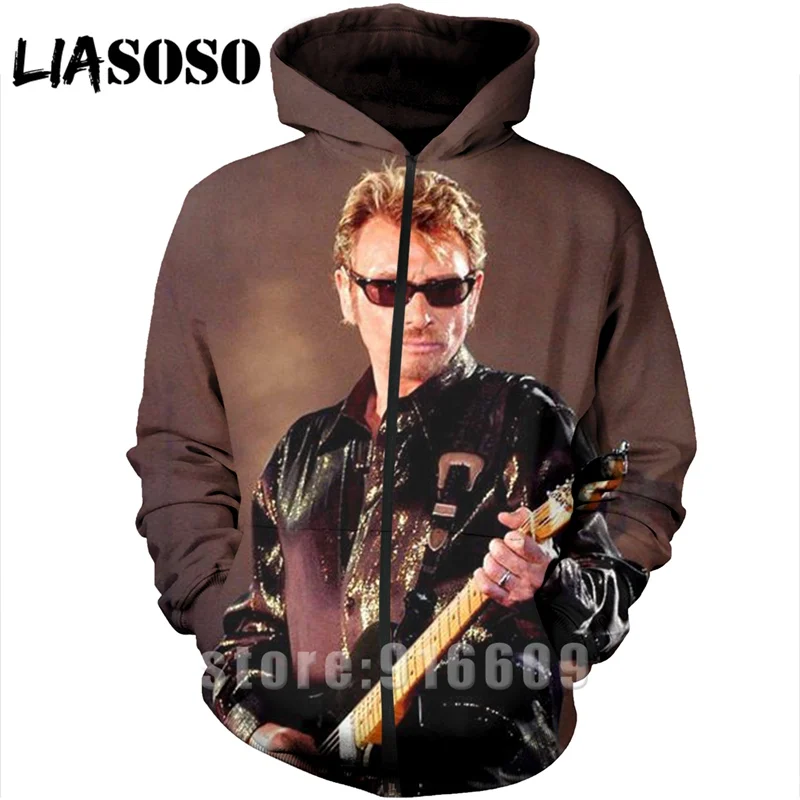 Мужская толстовка LIASOSO, с 3D-принтом, с изображением огненной рок-звезды, Джонни Холлидей, на молнии, Модный женский топ, толстовка, рубашка с капюшоном