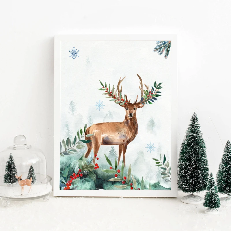 Праздничный декор, Рождественская тема, художественные плакаты и принты, Скандинавская настенная живопись, картины, украшение для дома, рождественские подарки