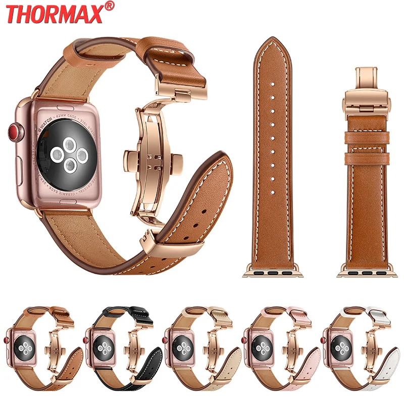 Ремешок для часов, кожаный, с застежкой-бабочкой, для Apple Watch 3...