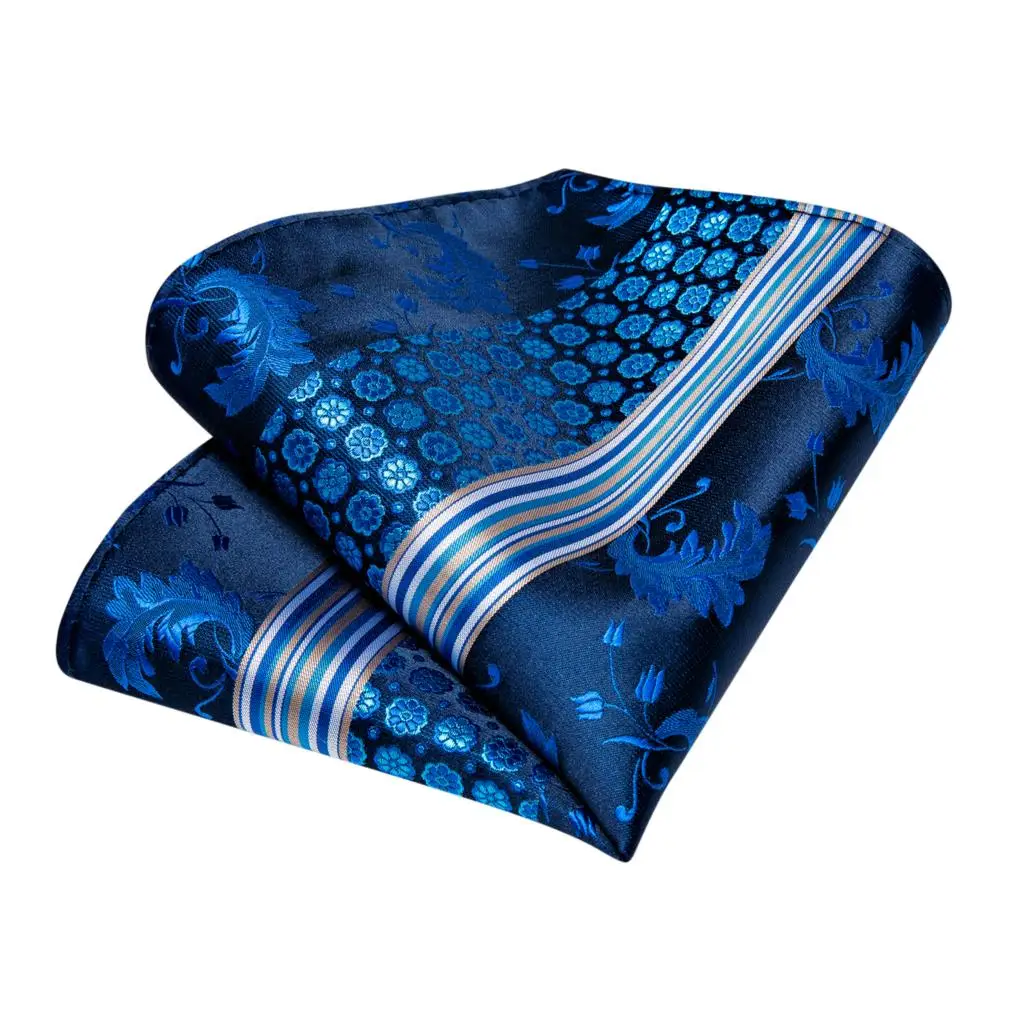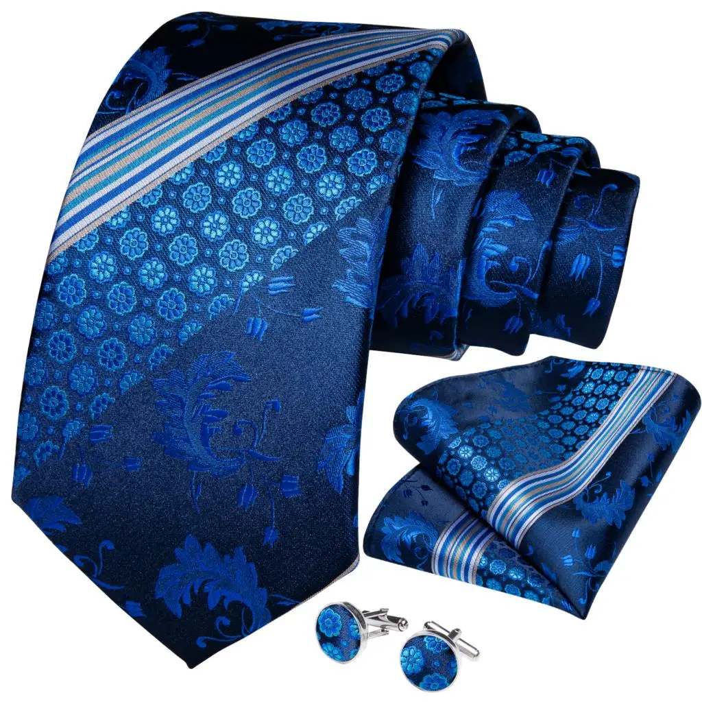 Мужской галстук темно-синий белый полосатый качественный Свадебный галстук для мужчин носовой платок запонки шелковый галстук набор DiBanGu новый дизайн бизнеса MJ-7311