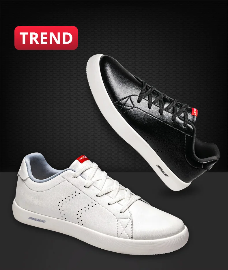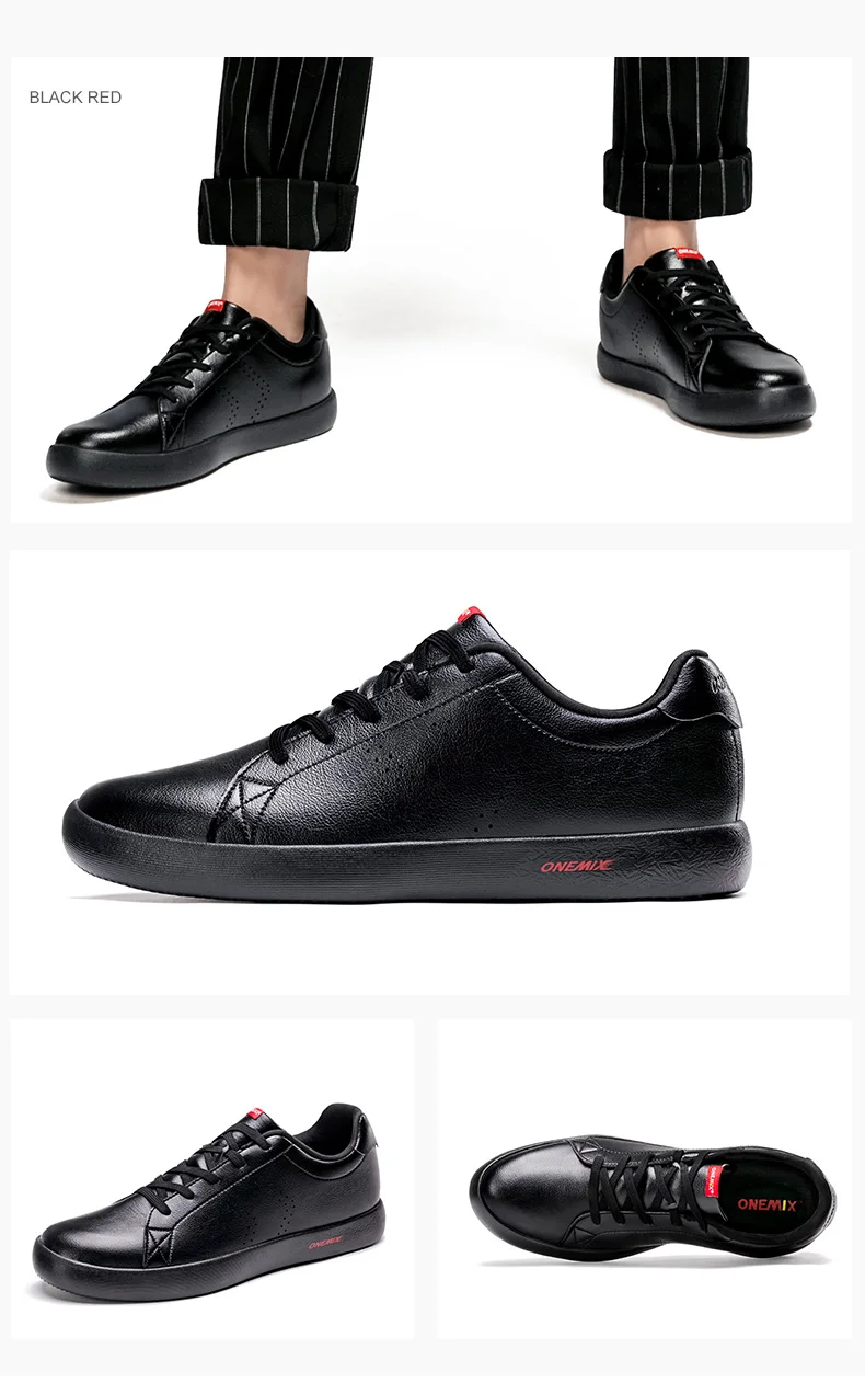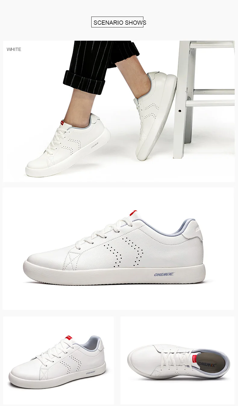 Классические мужские кроссовки ONEMIX для скейтборда, белые удобные кожаные уличные Повседневные Легкие кроссовки на шнуровке на плоской подошве для прогулок
