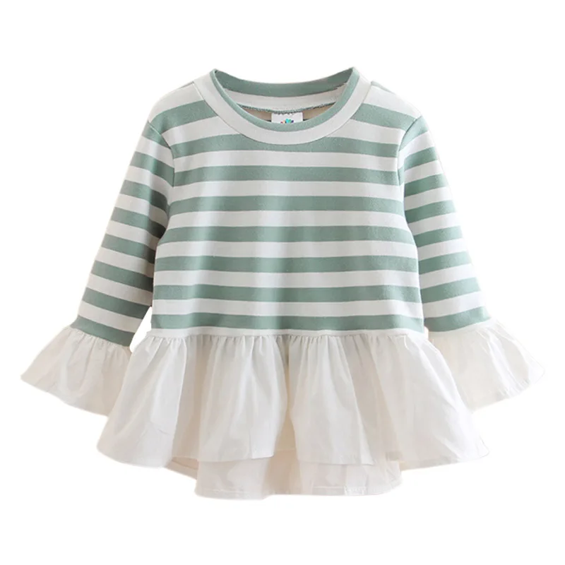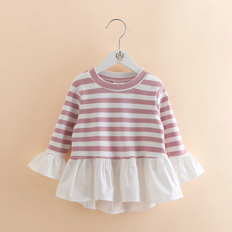 Весенняя мода 2021, детские футболки, топы с круглым вырезом и длинными рукавами, хлопковые, в полоску, в стиле пэчворк, Осенние футболки для маленьких девочек, От 2 до 10 лет