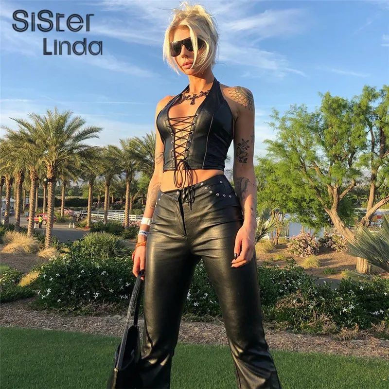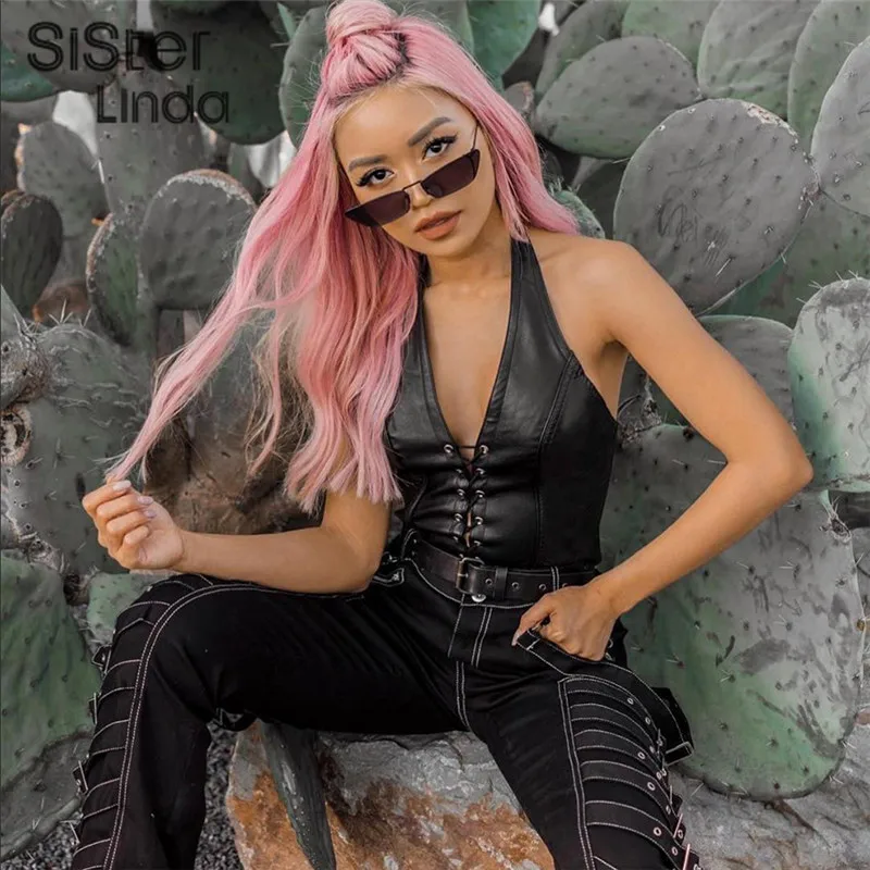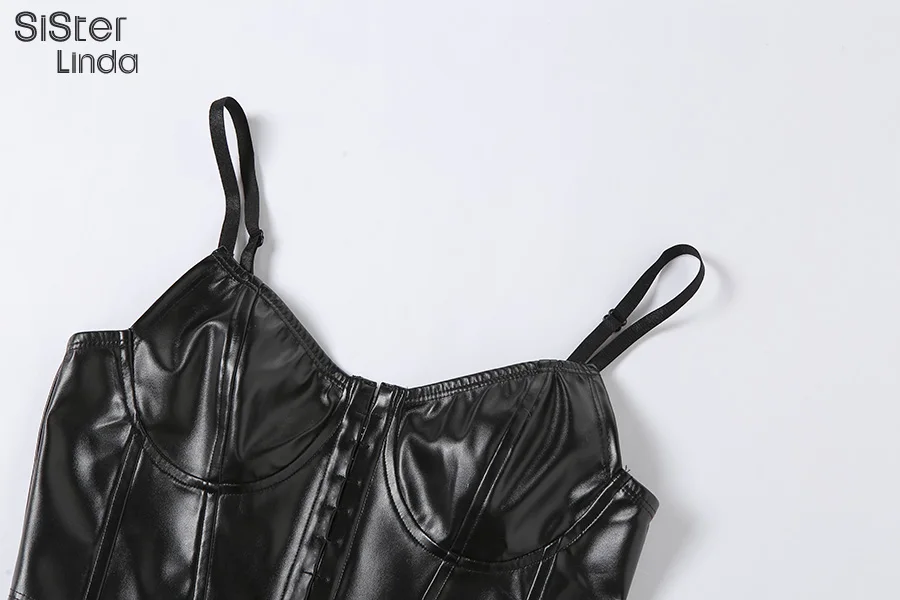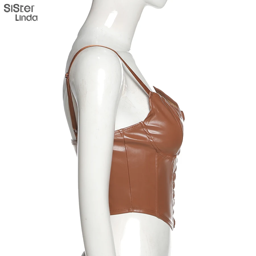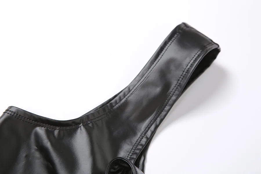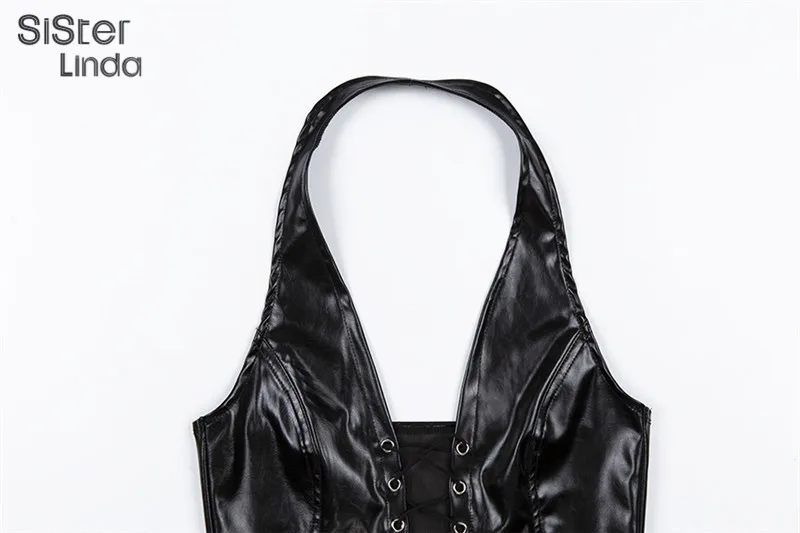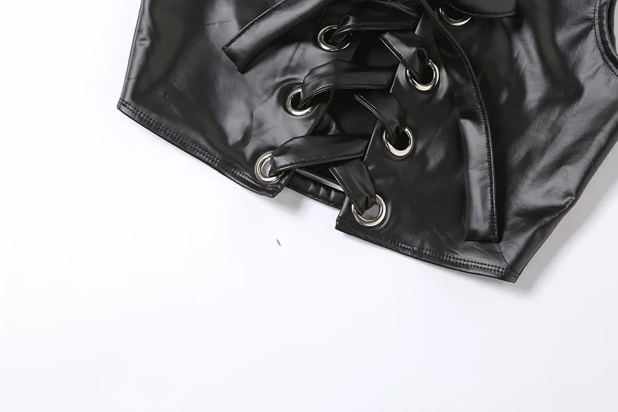 Топ женский из искусственной кожи, без рукавов, с глубоким V-образным вырезом и открытой спиной