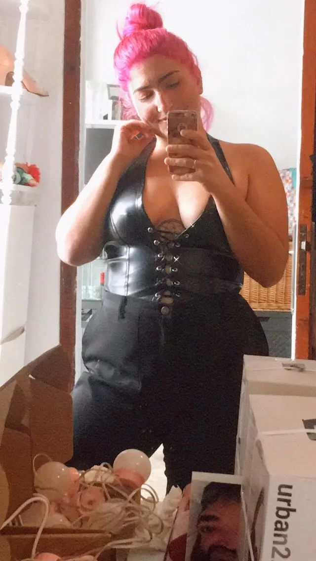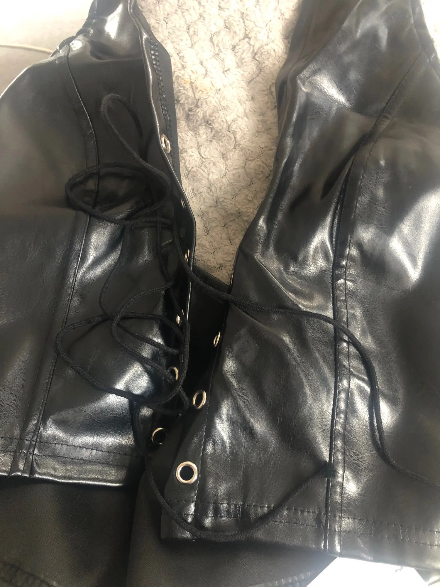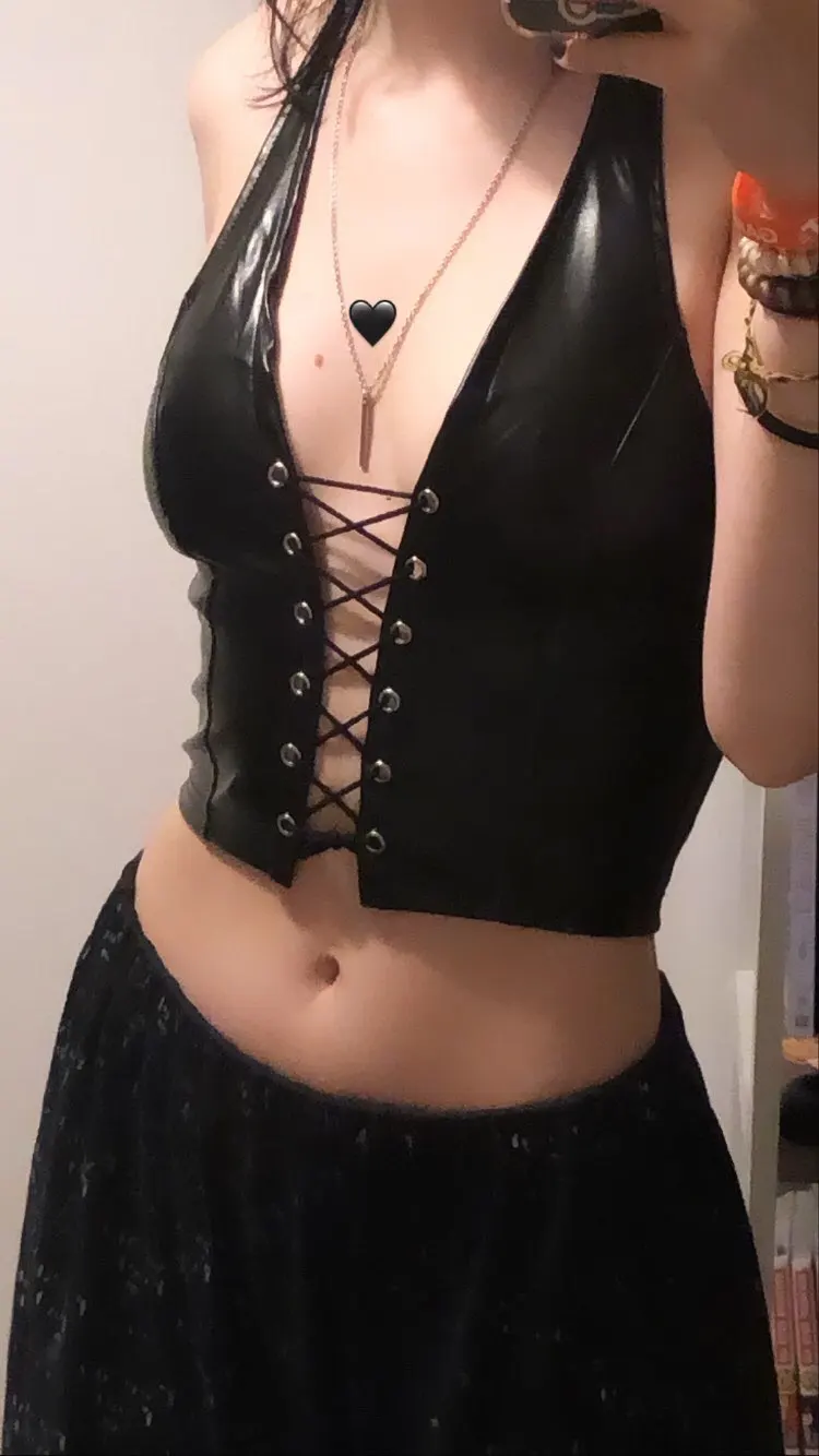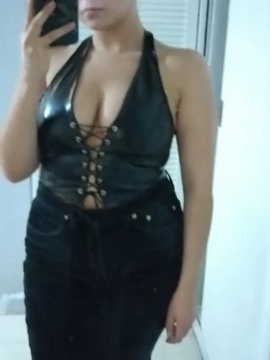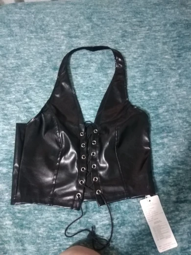 Мне очень нравится топ. Я испугался, что он не будет работать, потому что у меня есть большие груди (Dcup для справки), но это честно работает хорошо. Он даже держит ваши груди на месте, это хорошо, потому что вы не можете действительно носить его w бюстгальтер. Ткань не из толстой искусственной кожи, но она хорошая.
