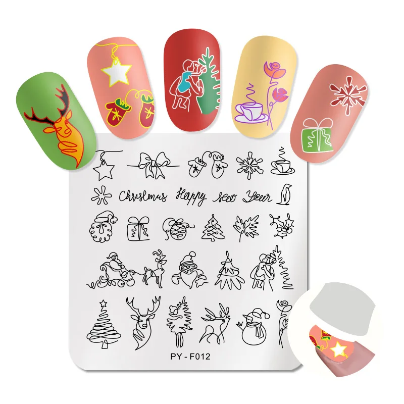 Квадратная штамповка PICT You, Рождественская серия, шаблоны для ногтей, инструменты из нержавеющей стали