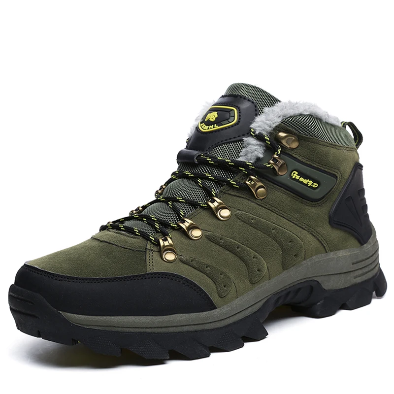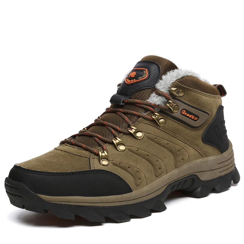 Мужские замшевые ботинки JUNJARM, теплые ботинки до щиколотки, Уличная обувь для ходьбы, с мехом и плюшевым подкладом, для зимы, размера плюс, 47