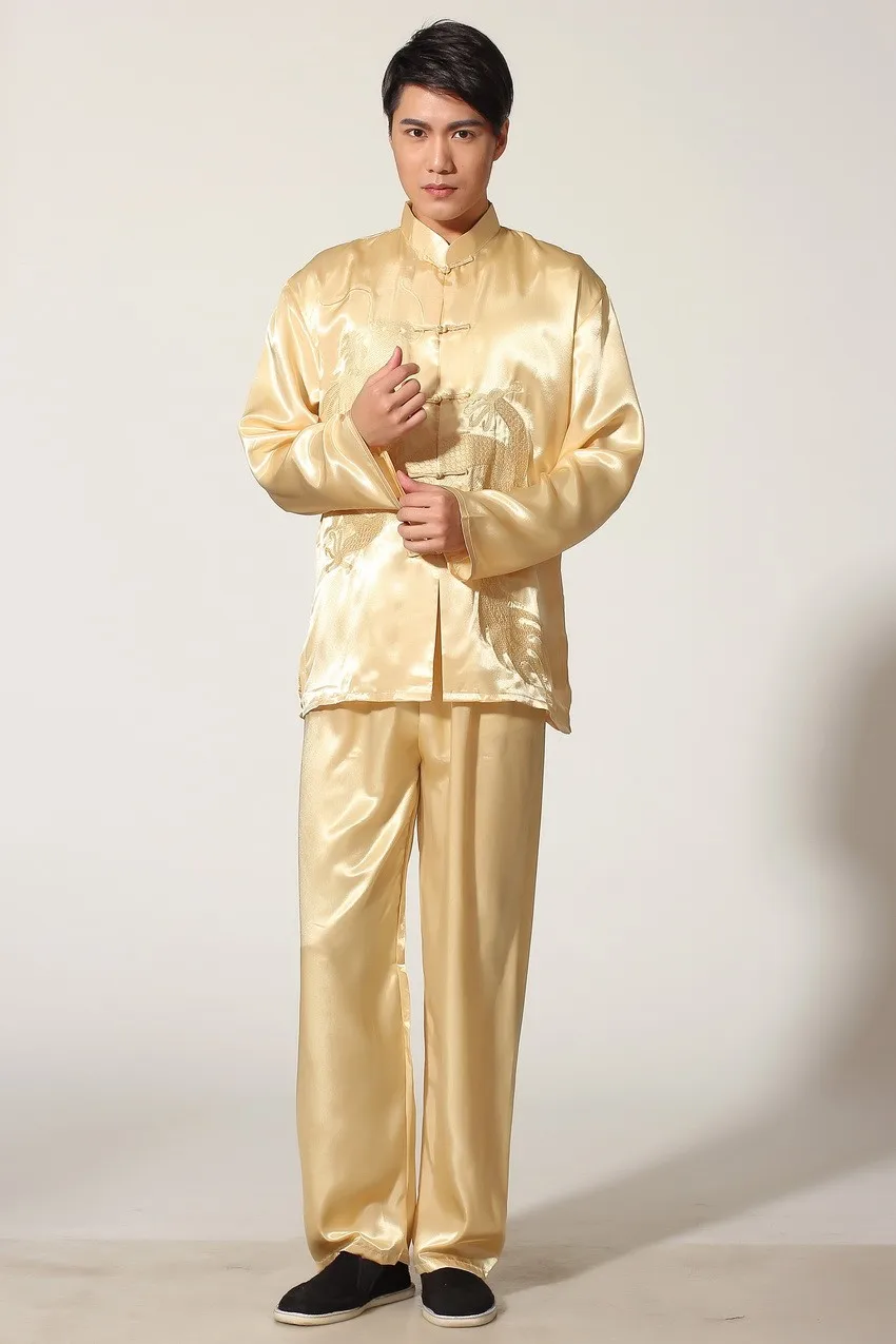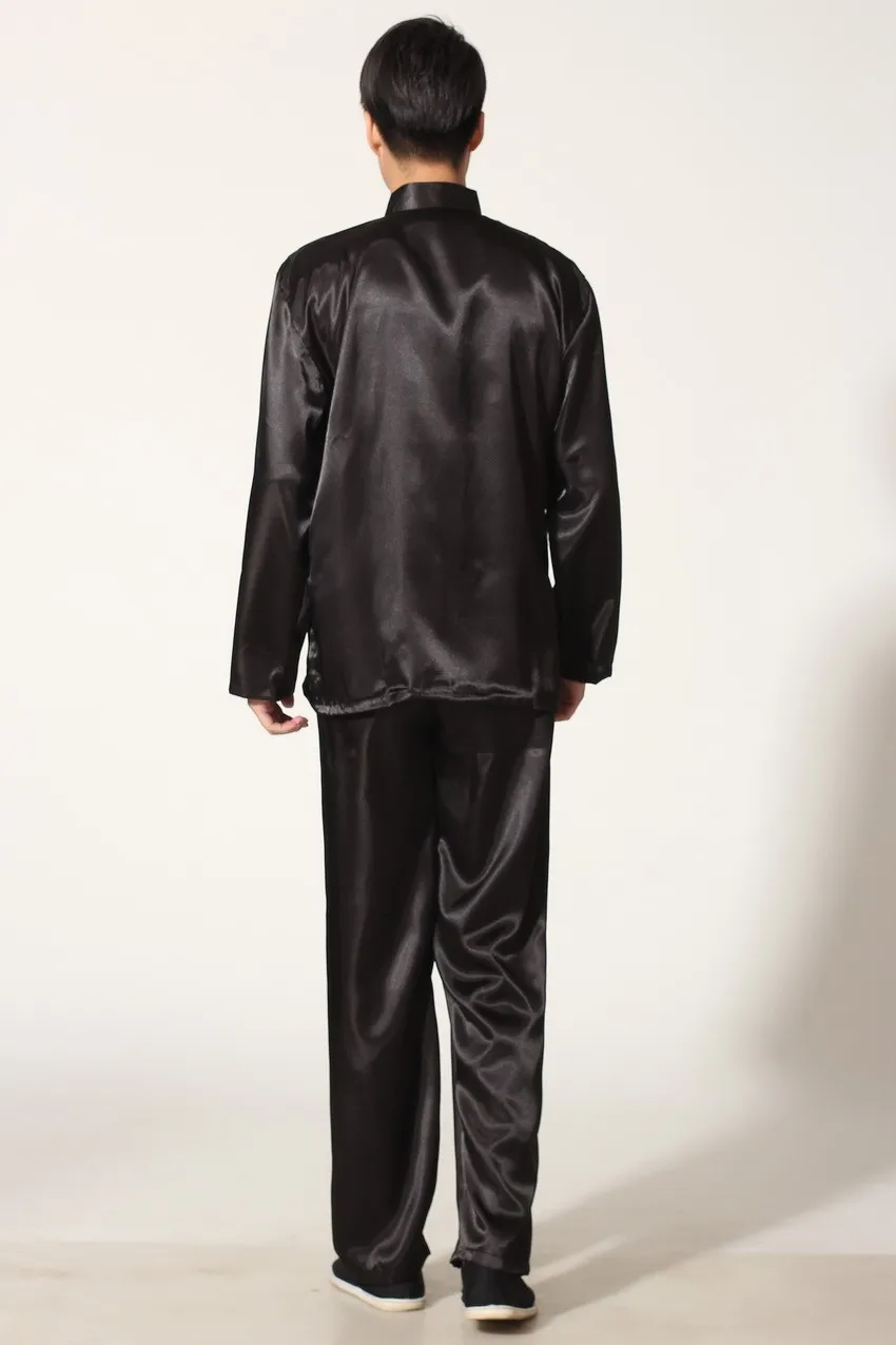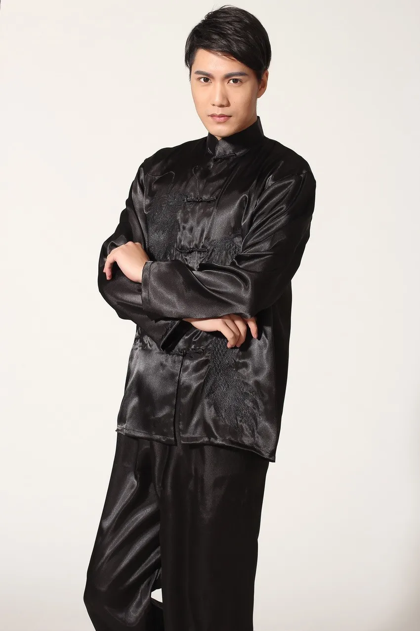 Костюм кунг-фу в традиционном китайском стиле, черный атласный костюм в винтажном стиле с вышивкой дракона Тай Чи ушу, Униформа, одежда S M L XL XXL