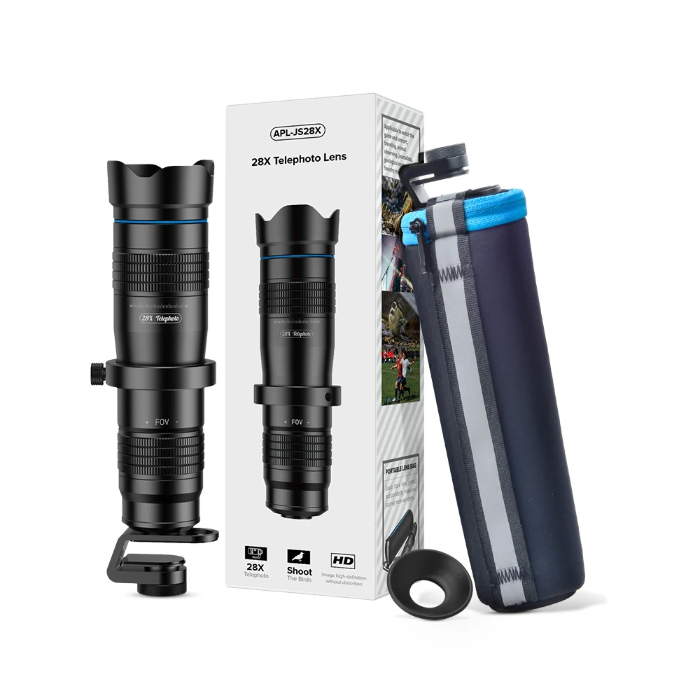 1x 28x telescope lens 1x universal metal clip 1x eye cup 1x carrying bag 1x user manual 1x cleaning cloth 1x gift box