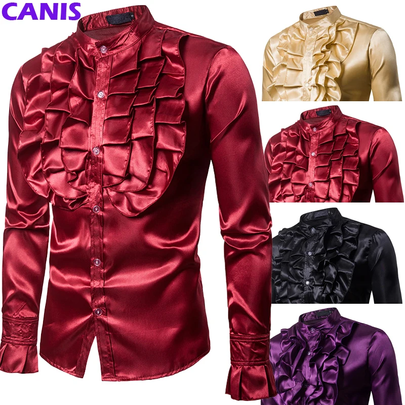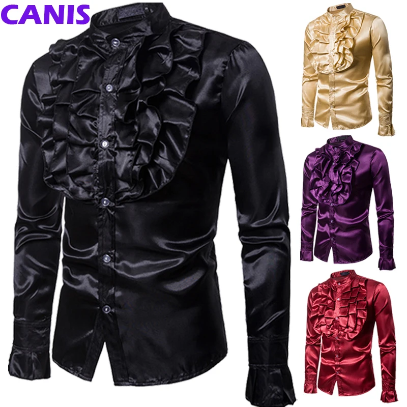 2019 Модные Роскошные Рубашки, мужская повседневная приталенная Классическая рубашка для клувечерние, топ с воротником-стойкой, сценические рубашки с длинным рукавом, топы