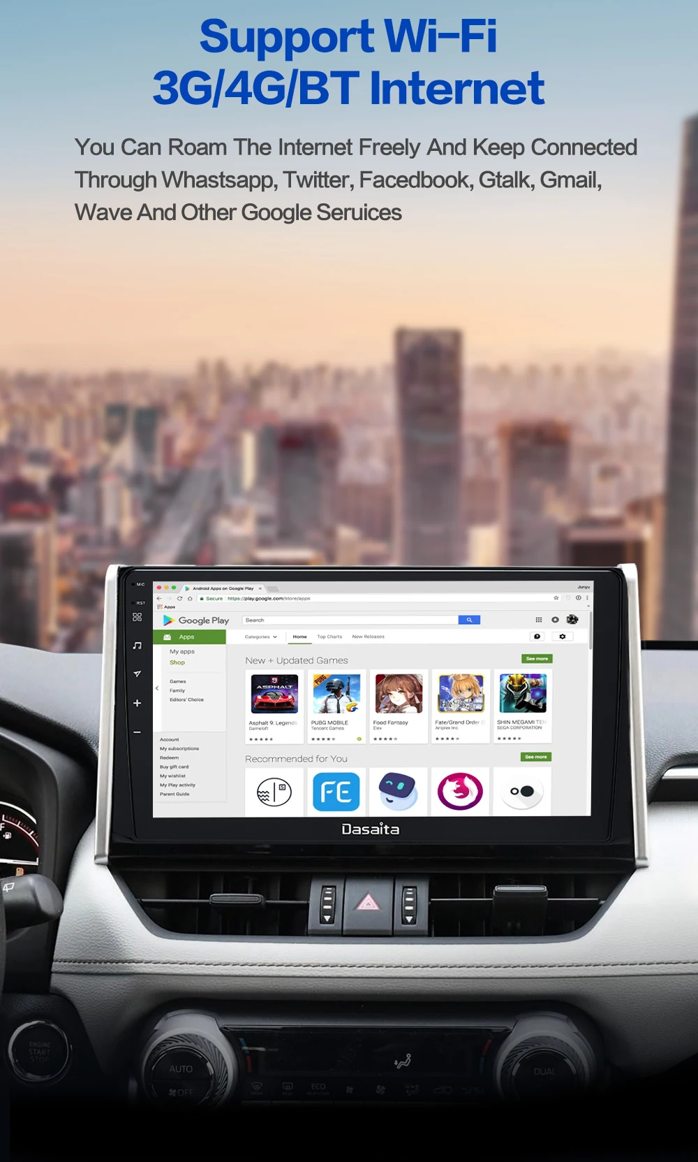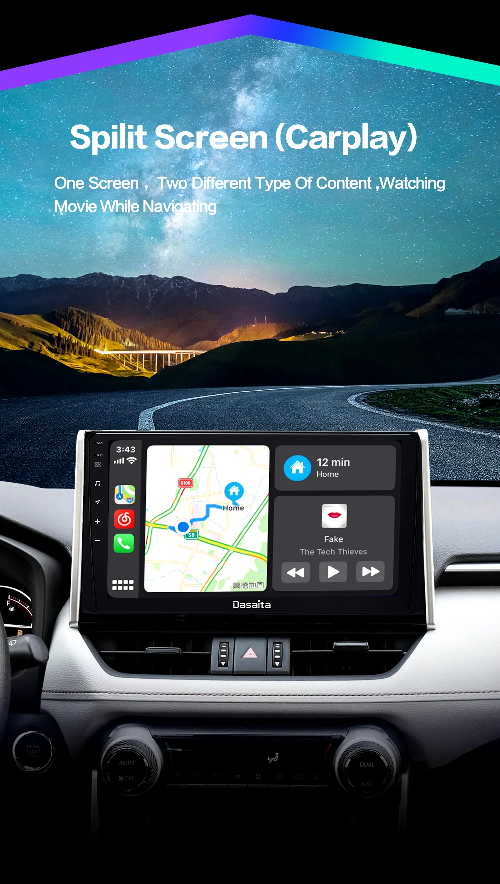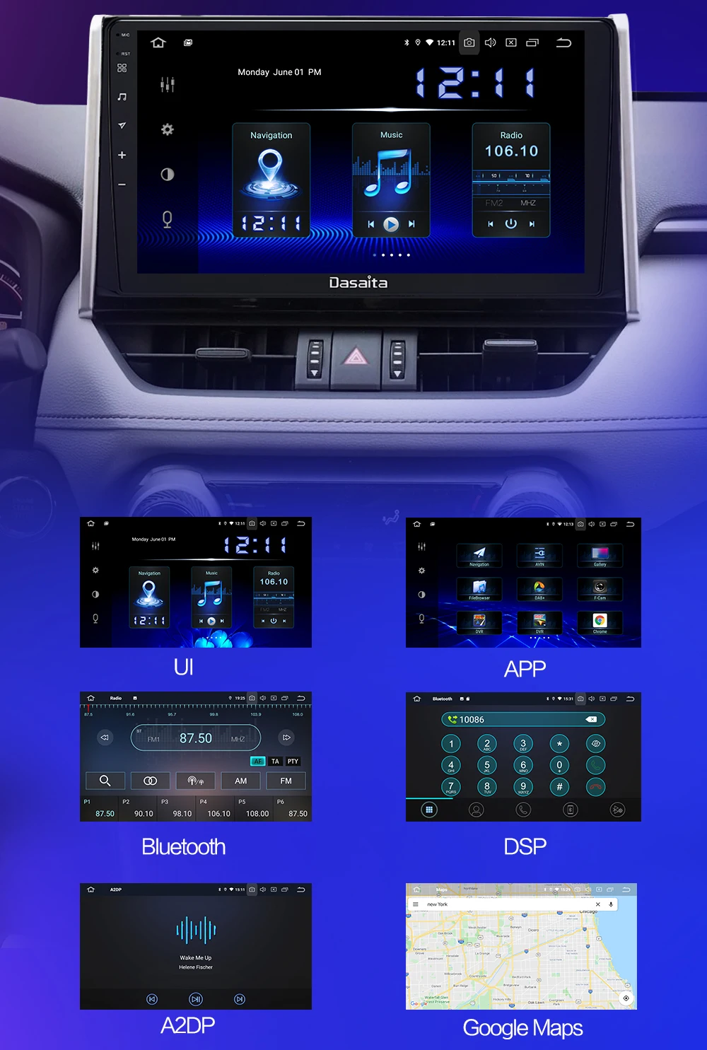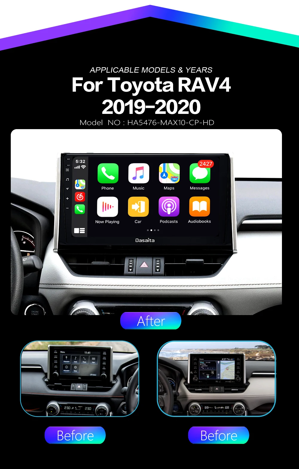 Dasaita 10,2 "Android 10,0 автомобильное радио для Toyota RAV4 2018 2019 2020 DSP мультимедийный плеер CarPlay Android Auto GPS 4 Гб + 64 ГБ