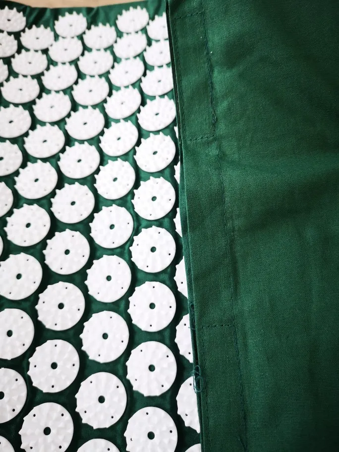 Товар соответствует заявленному и совпадает с фото. Чехол у подушки на молнии, у коврика на липучках, можно стирать. Паралон внутри имеет неочень приятный запах, но, надеюсь, что выветрится. Колючки острые, мне нравится. Рекомендую. Доставка в Латвию 1 месяц.