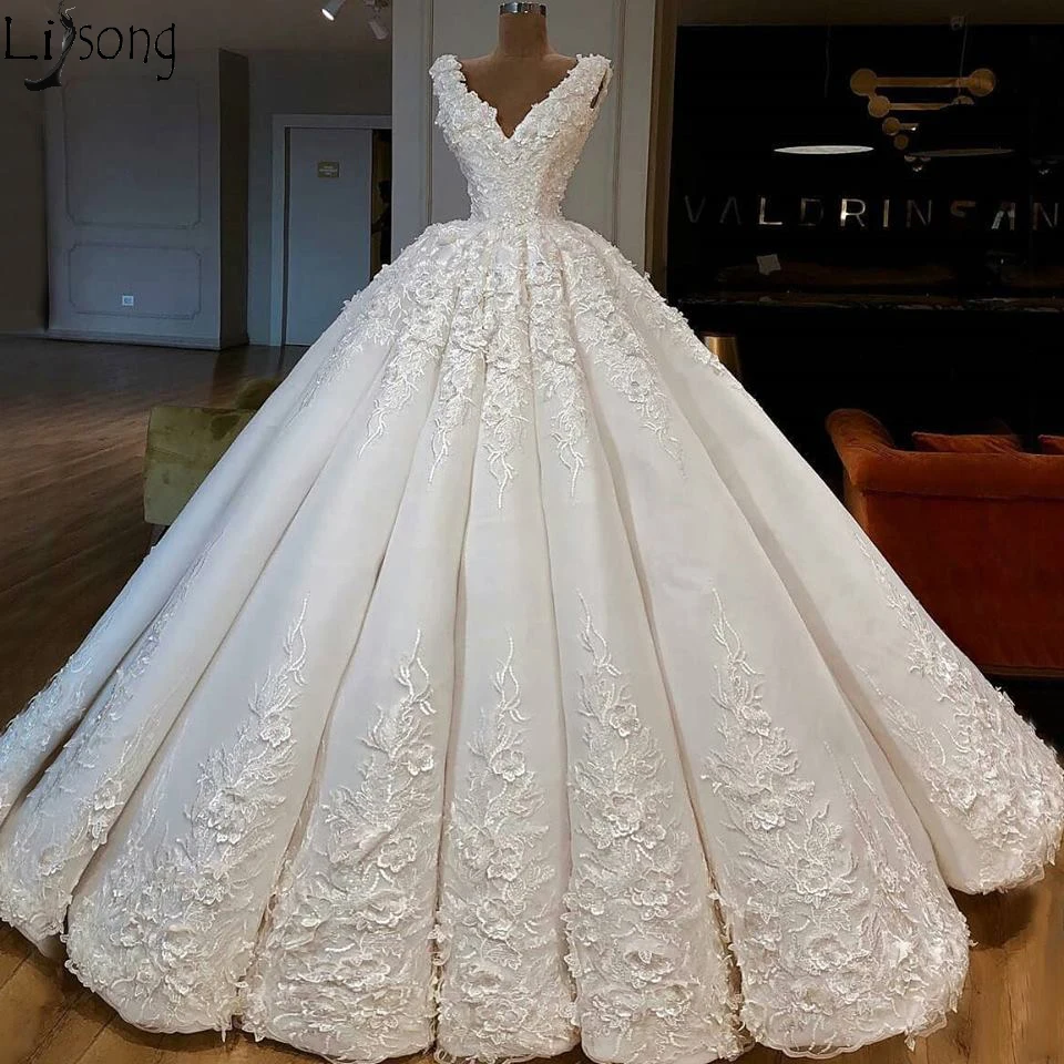 Великолепные Свадебные платья цвета шампань 2018 с белыми 3D цветам...