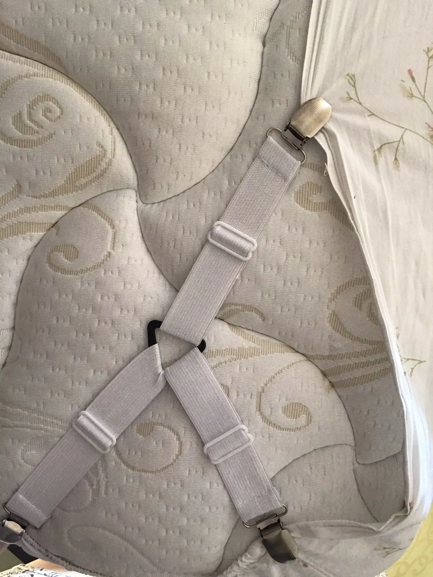 Спим уже два дня с этими «подтяжками»)) не смотря на то, что у нас простынь на резинке, она все равно скомкивается постоянно. Спим с зажимами уже два дня, все супер! Надо попотеть на каждому углу, чтобы их закрепить, но 4 минуты раз в две недели того стоят! Зато вообще ничего не сползает и не скомкивается под тобой, простыня натянута, очень приятно спать. Ткань под зажимом не рвётся, все ок.