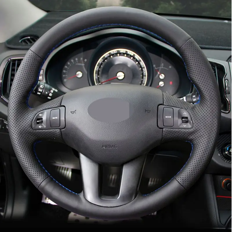 Сшитые вручную Чехлы рулевого колеса автомобиля из искусственной кожи черного цвета для Kia Ceed Cee 'd 2010-2012 Sportage 3 2011-2015