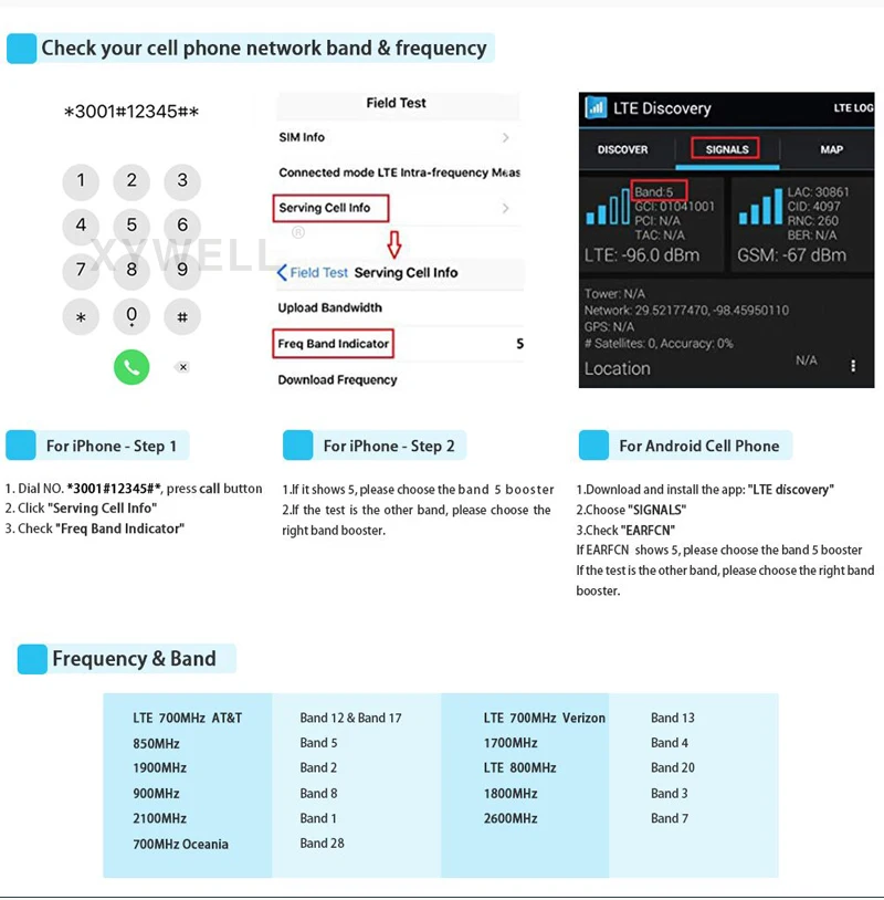 1. Включите сеть (2G/3G/4G), вы хотите расширить и выйти на улицу вашего дома: О: если вы используете телефон Samsung. Держите телефон снаружи. Циферблат: * #0011 # → обслуживание → B: если вы используете iPhone. Держите телефон снаружи. Циферблат: * 3001 #12345 # * → Нажмите на: обслуживание информации о сотовом телефоне 2. Установите приложение: Network cell info Lite и покажите нам скриншот.