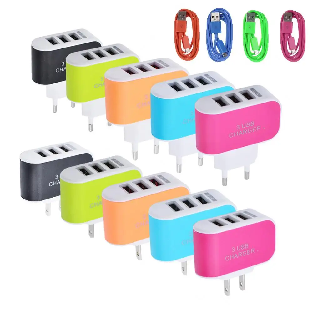 UBB зарядное устройство для мобильного телефона для путешествий 3.1A Быстрая зарядка 3 usb порта подключаемый настенный адаптер зарядного устройства с кабелем для передачи данных