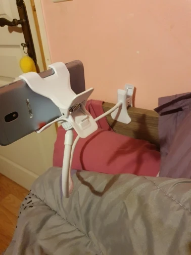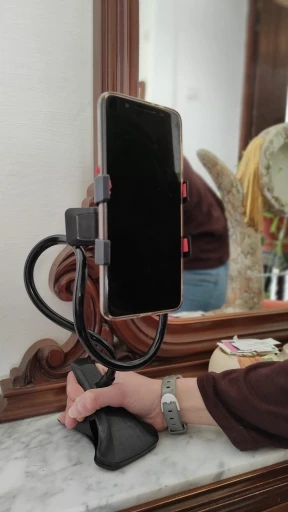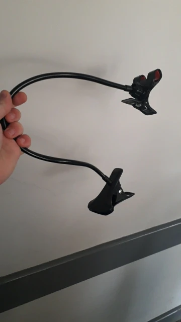 Хорошая удобная штука. Резинки держателя можно было бы и получше приклеить, проволка жесткая, но телефон может иногда перевешивать, не критично, просто нужно выбирать правильный угол :)