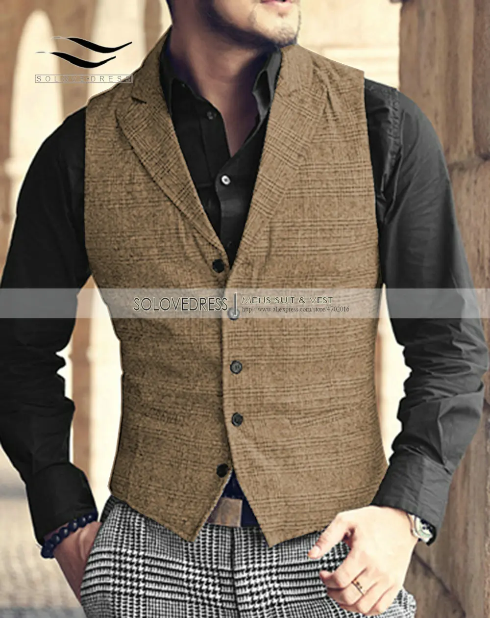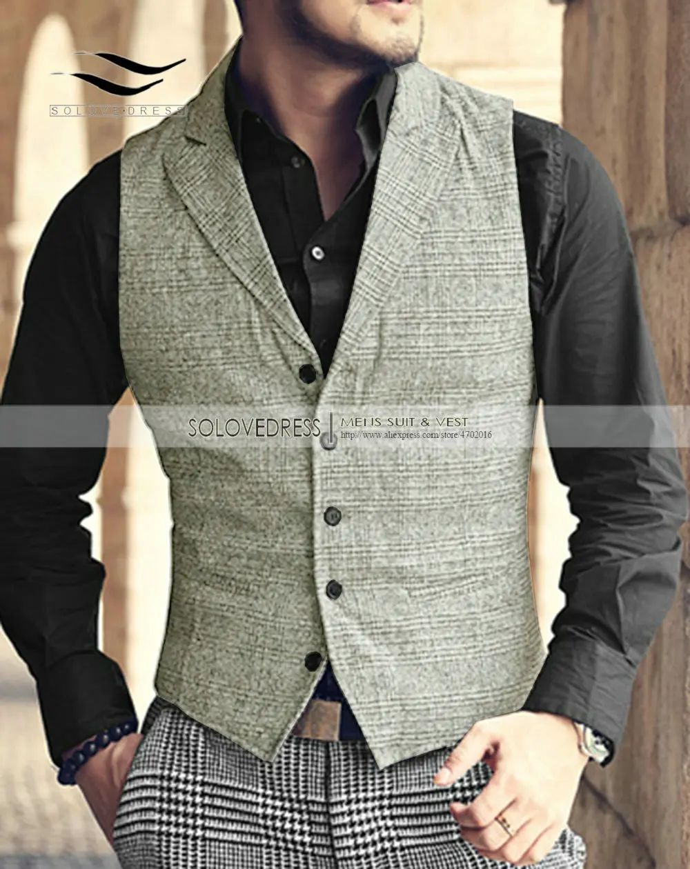 Мужской однобортный жилет, шерстяной жилет в клетку с V-образным вы...