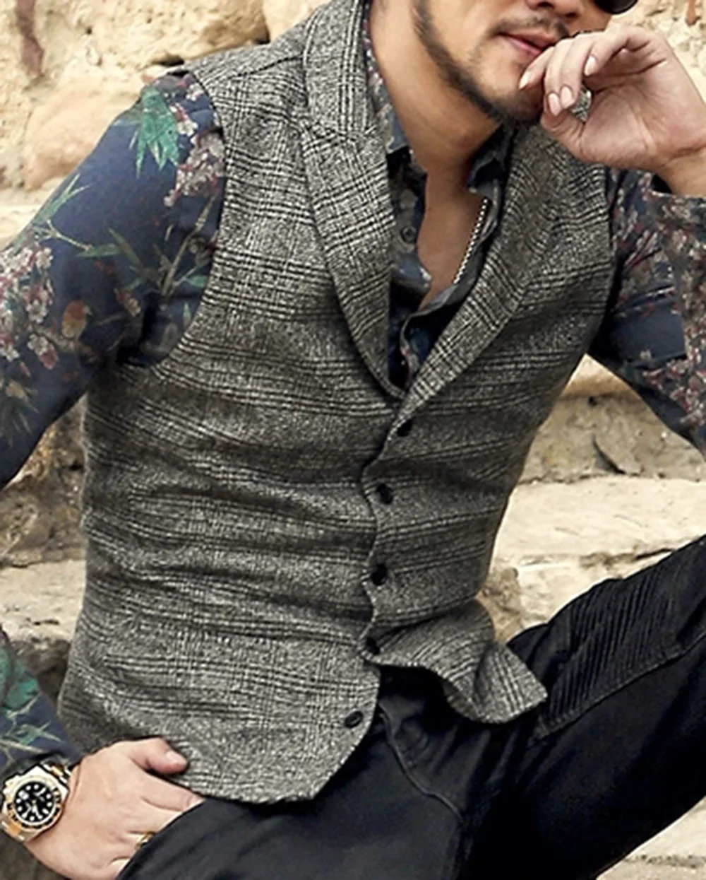 Жилет Мужской приталенный, элегантный твидовый жилет из ткани в ело...