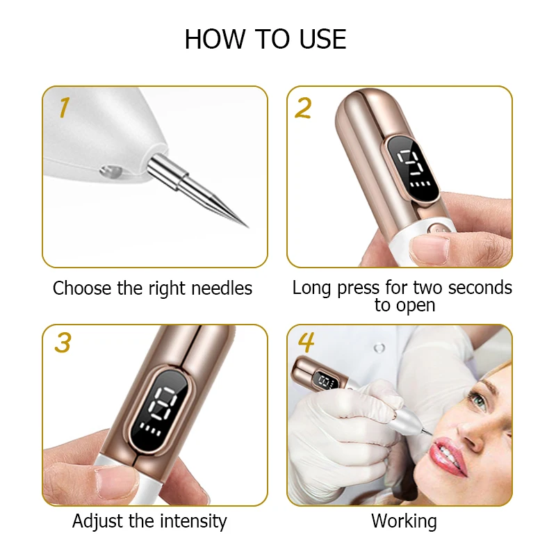 The plasma pen is exactly As expected from a professional. Все в информации о интенсивности, которую нужно выбрать в соответствии с результатами, которые вы ищете (пятна, морщины, стразы...) и размер игл для использования. Я ждал ухода, чтобы написать оценку, и я должен сказать, что это отличная статья. Время ожидания было примерно 7 дней, и продавец очень дружелюбный. Так что без сомнения: рекомендую, работает отлично