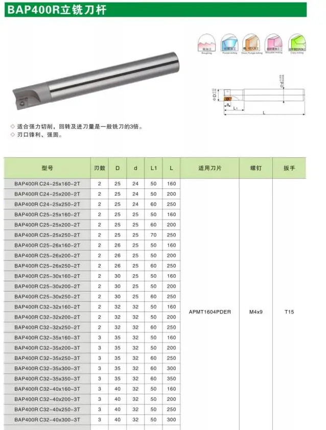 Торцевая фреза BAP400R, 502250 мм, с 4 канавками, с 10 вставками AP...