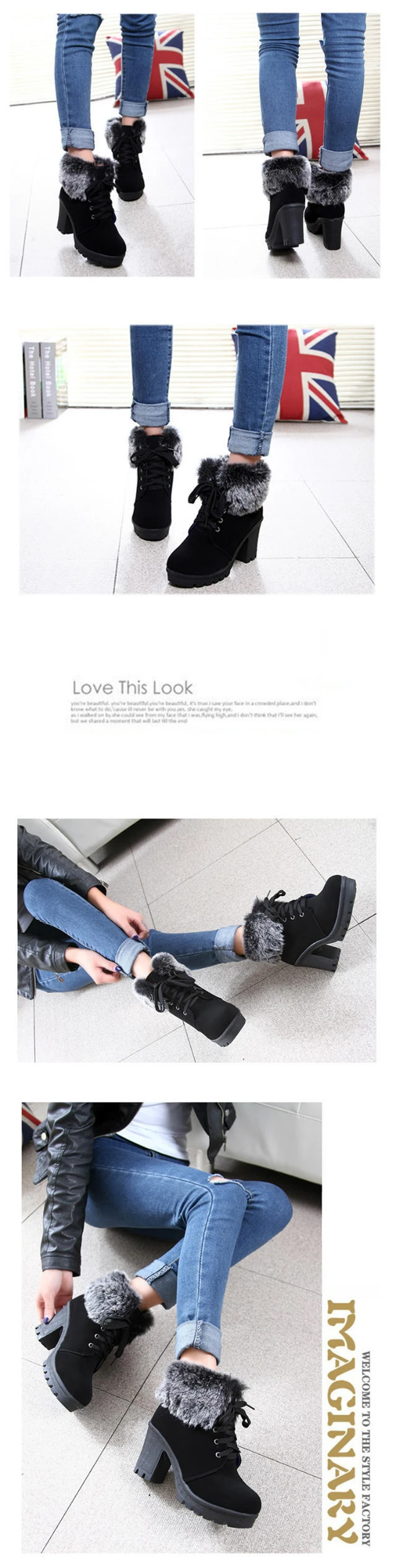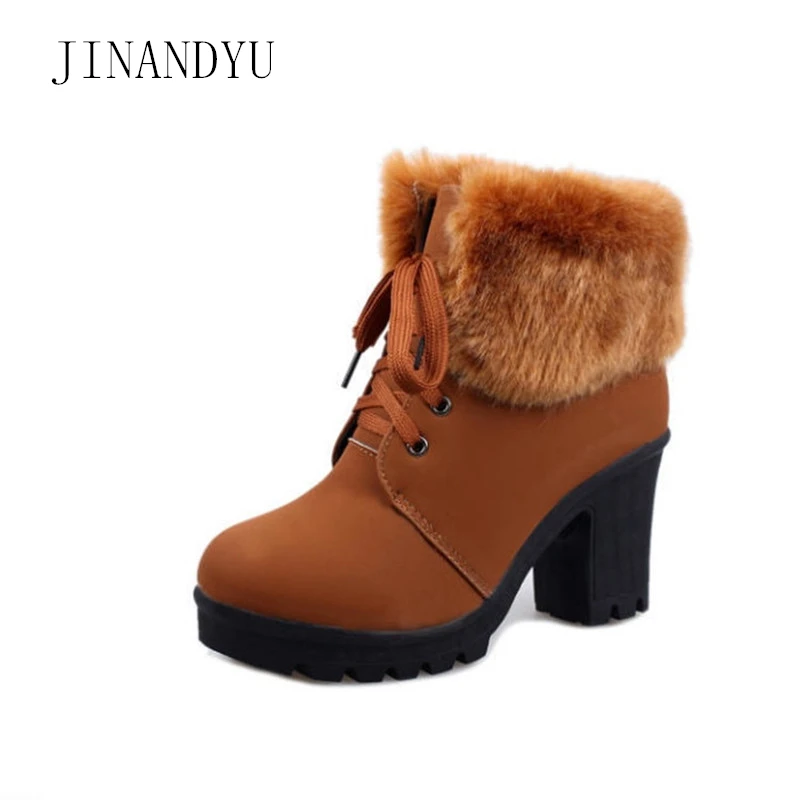 Ботильоны на высоком каблуке, женская зимняя обувь, плюшевые зимние ботинки, ботинки из натуральной кожи на шнуровке, теплая меховая обувь на каблуке 8 см, женские ботинки